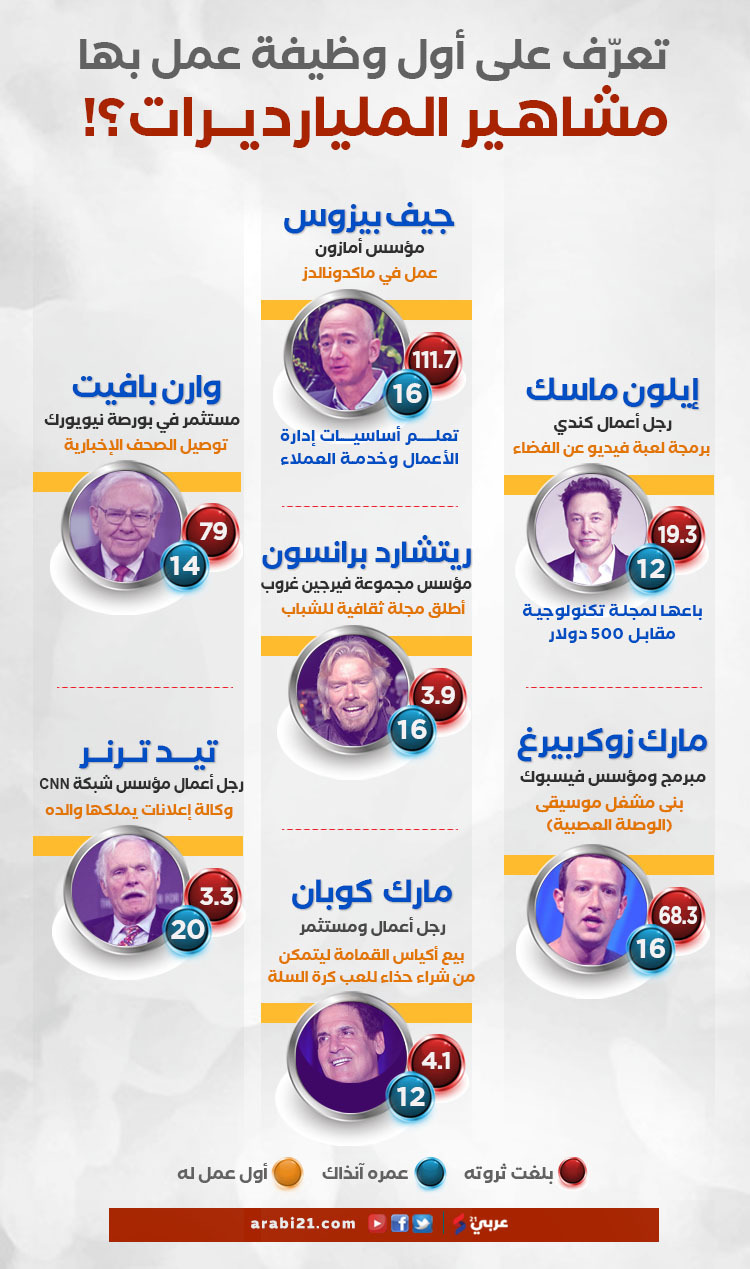 تعرف على أول وظيفة عمل بها مليارديرات مشاهير