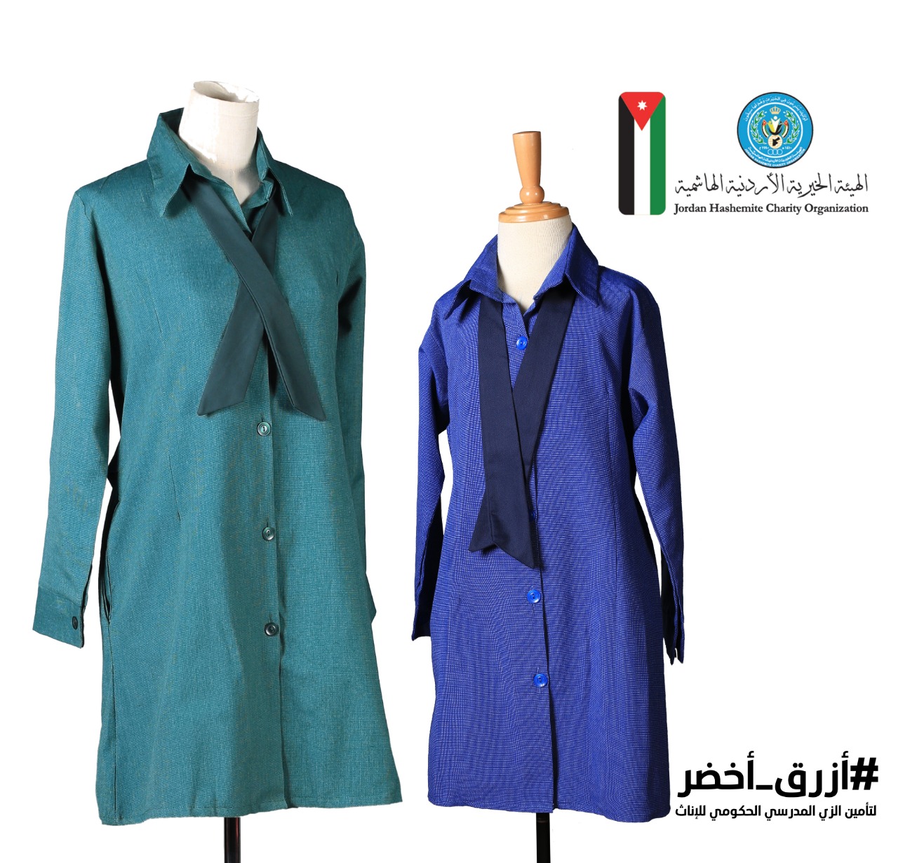 توزع الهيئة الخيرية الأردنية الهاشمية بالتعاون مع وزارة التربية والتعليم اليوم نحو 15 الف مريول مدرسي على الطالبات المحتاجات ضمن مبادرة "أزرق..أخضر".