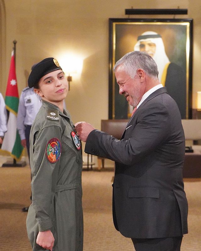 الملك يقلد الأميرة سلمى بنت عبدالله الثاني جناح الطيران (صور)