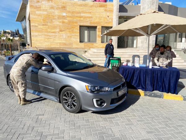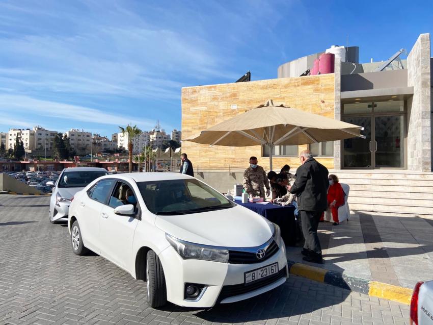 ونشرت مدينة الحسين للشباب صورا خلال اعطاء لقاحات كورونا داخل المركبات، وقالت: "تسهيلاً على كبار السن البدء بعملية تطعيم لقاح كورونا لكبار السن وهم جالسين بمركباتهم".