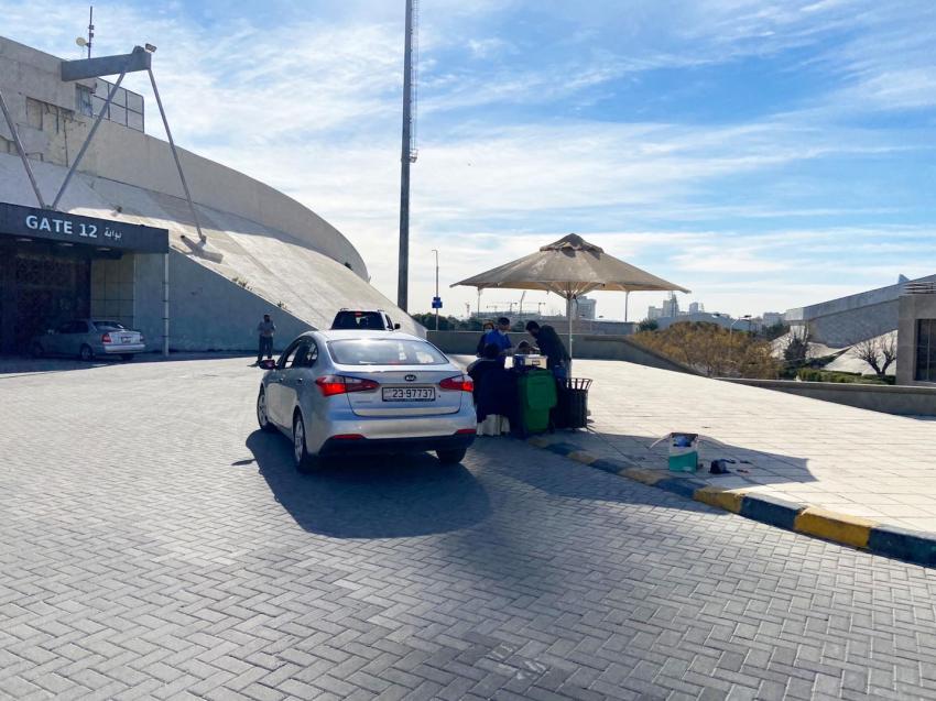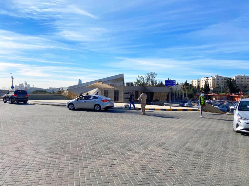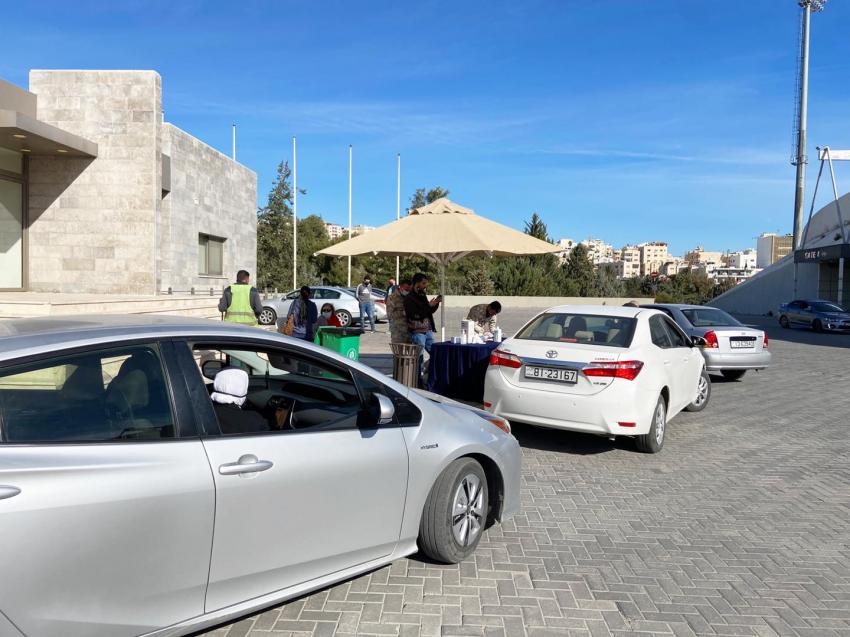 بدأت وزارة الصحة بتقديم خدمة إعطاء لقاحات كورونا دون النزول من السيارة "درايف ثرو"، بمركز تطعيم مدينة الحسين للشباب.