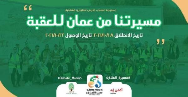 عمان جو - بتنظيم من جمعية الجيل الأخضر تنطلق صباح الاثنين، فعاليات (مسيرة المناخ 5) من عمان إلى العقبة مشيا على الأقدام للمرة الخامسة على التوالي (بعد توقفها العام الماضي بسبب ظروف الجائحة). وتأتي هذه المسيرة تحت عنوان "استجابة الشباب الأردني للطوارئ المناخية" بالتعاون مع آكشن إيد المنطقة العربية.
