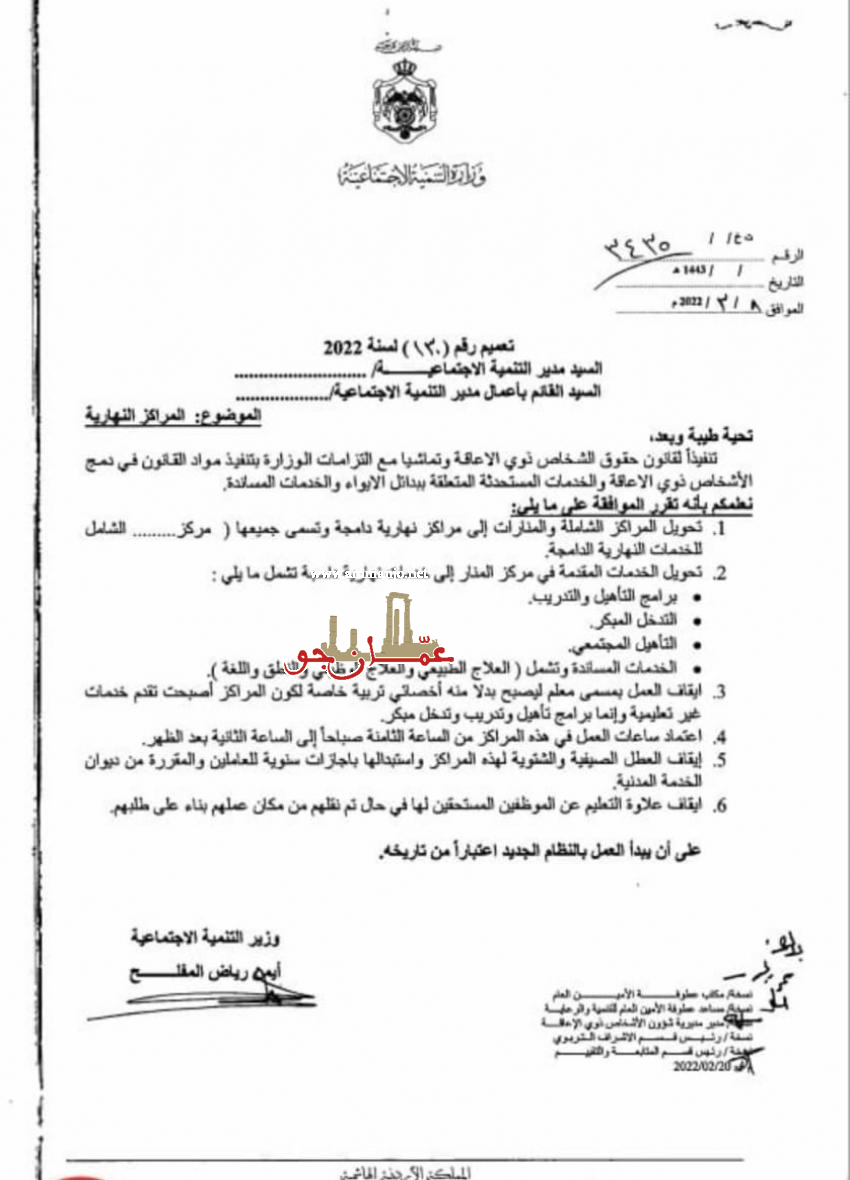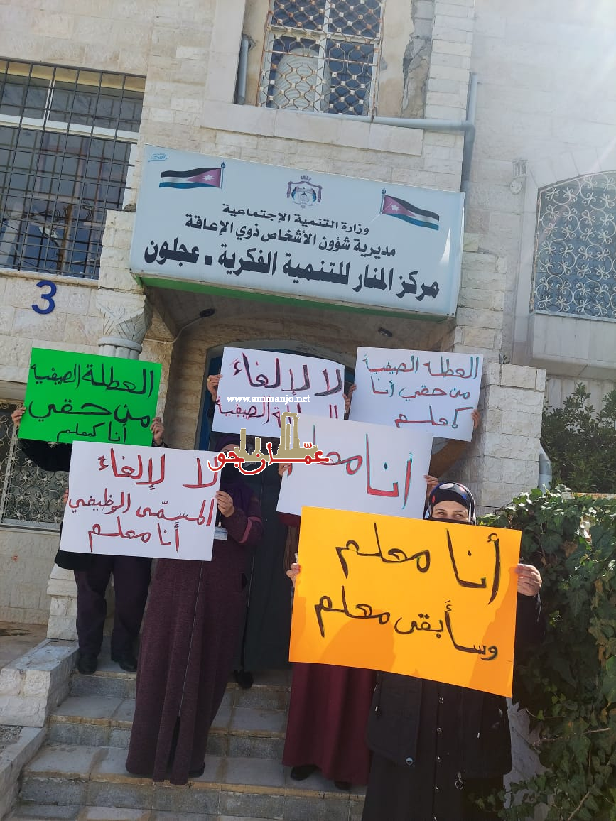وكانت عشرة مراكز منار تابعة لوزارة التنمية الاجتماعية، نيتها تنفيذ وقفة احتجاجية للمعلمين والموظفين في المراكز اليوم الخميس من الساعة العاشرة صباحا ولغاية الحادية عشرة. ووفق بيان المراكز الذي وصل "عمان جو" نسخة منه، يأتي الاعتصام احتجاجا على قرارات وزير التنمية الإجتماعية والتي شعر فيها الموظفون بنقض الوزارة للعقود المتفق عليها معهم عند تعيينهم، وبالتغول على حقوقهم وامتيازاتهم الوظيفية بعد عقود من تعيينهم.