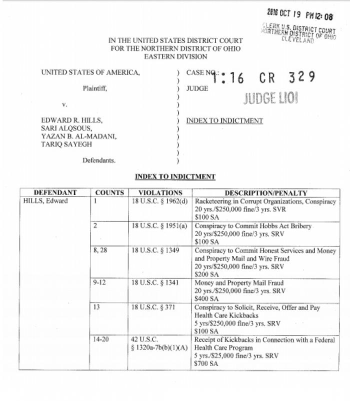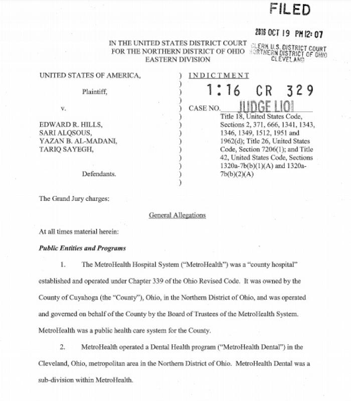 وقبض عملاء مكتب التحقيقات الفيدرالي على هيلز (56 عاما) في منزله في أورورا. فيما القبض أيضا على أطباء الأسنان الاردنيين ، ساري 32 عاما في كليفلاند، ويزن (32 عاما) من ويست ليك، وطارق (38 عاما) من كليفلاند.