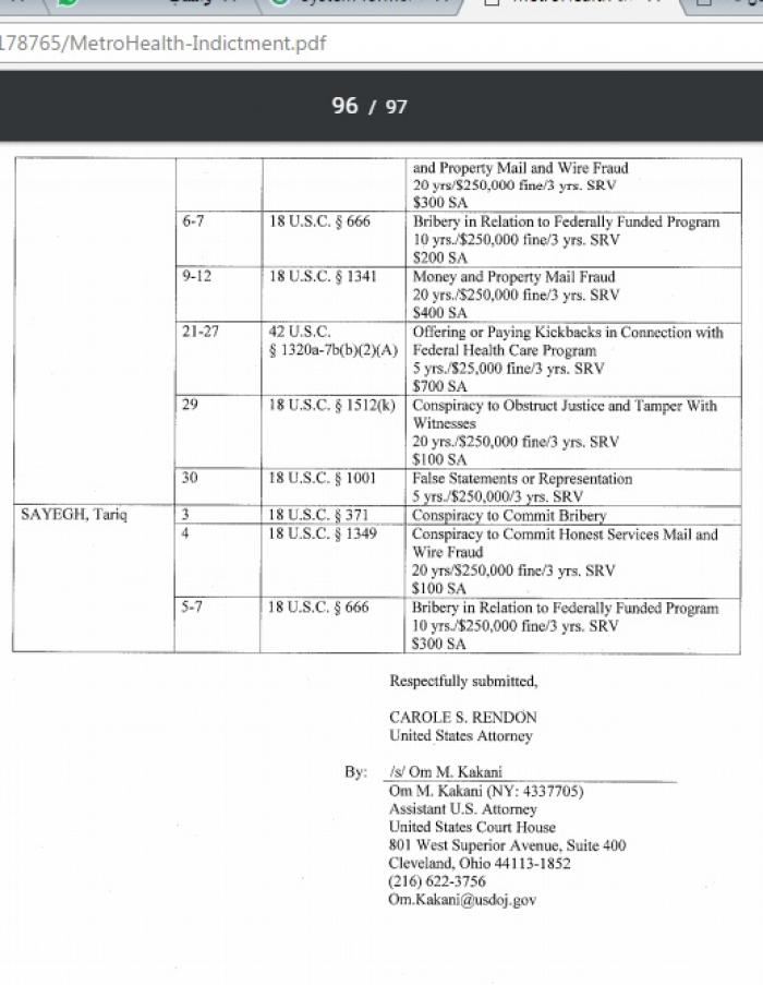 ويحقق مكتب التحقيقات الفيدرالي ومصلحة الضرائب في القضية منذ أكثر من عامين. ويقول المحققون أن العمليات المريبة للمتهمين بدأت عام 2008، في حين أن العملاء الفيدراليين ما زالت تحقق في الفساد في جميع جوانب مقاطعة كوياهوغا.