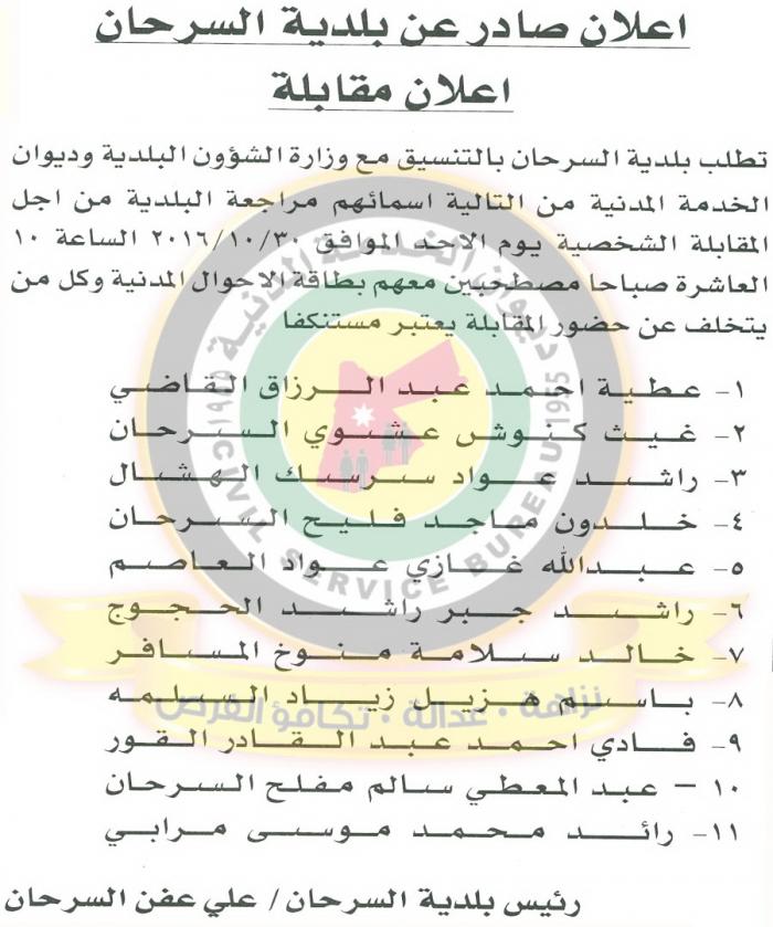 ودعا ديوان الخدمة الأسماء المبينة في الأسفل، إلى عدم التخلف عن المقابلات، وإلا يعتبر مستنكفاً .