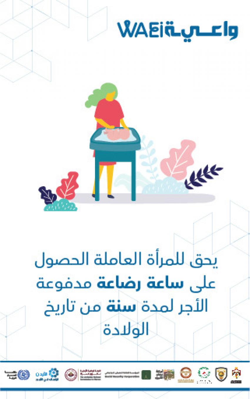عمان جو - أكدت وزارة العمل اليوم الأحد، أنه يحق للمرأة العاملة الحصول على ساعة رضاعة مدفوعة الأجر لمدة سنة من تاريخ الولادة.