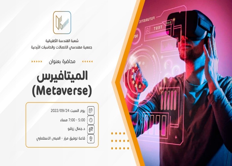 عمان جو - ألقى عضو الهيئة التدريسية في قسم الواقع الافتراضي والمعزَّز في كلية تكنولوجيا المعلومات في جامعة البترا الدكتور جمال زراقو محاضرة لشعبة الهندسة الكهربائية في جمعية مهندسي الاتصالات والحاسبات الأردنية في نقابة المهندسين الأردنيين، بعنوان: (تقنية الميتافيرس: Metaverse). وقد اشتملت المحاضرة على عدد من الأسئلة التي تفرضها طبيعة الموضوع، والإجابة عنها.