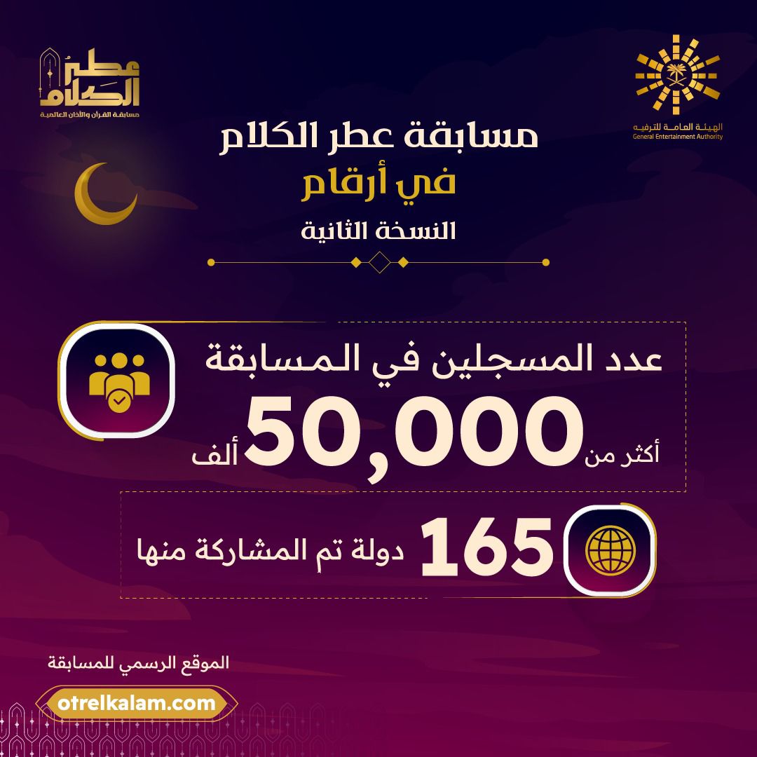 وتعد مسابقة "عطر الكلام" أول مبادرة على مستوى العالم لتنظيم مسابقة مشتركة بين التلاوة والأذان في وقت واحد، ونجحت خلال نسختها الأولى في جذب نخبة من القراء والمؤذنين المميزين من جميع أنحاء العالم، مما يؤكد ريادة المملكة في إطلاق المسابقات النوعية، ودعمها لأصحاب المواهب في مختلف المجالات.