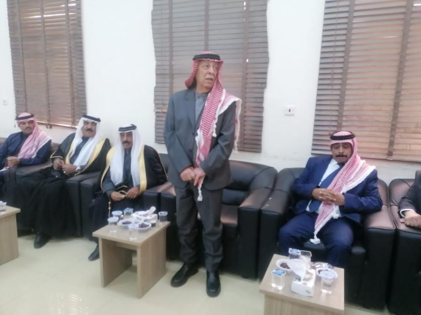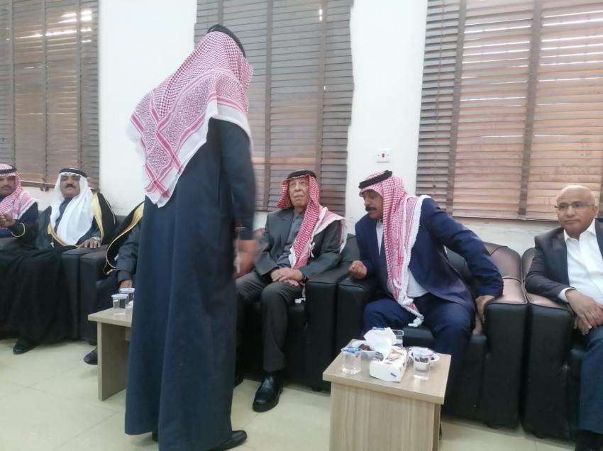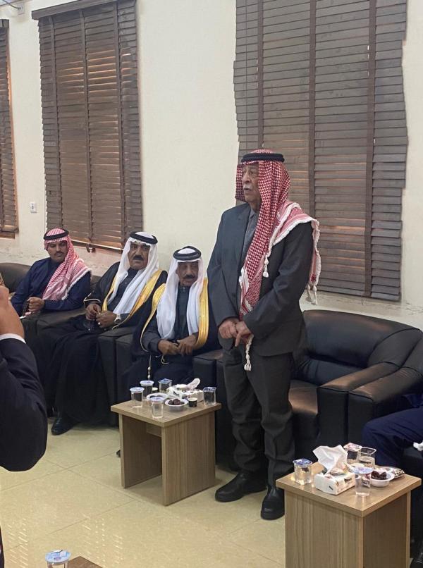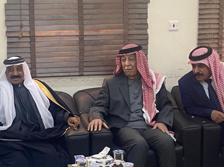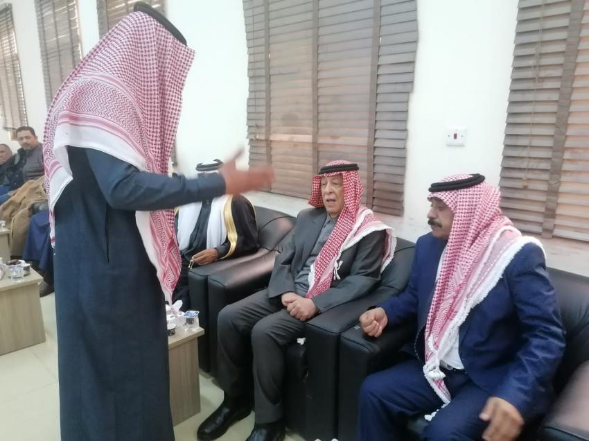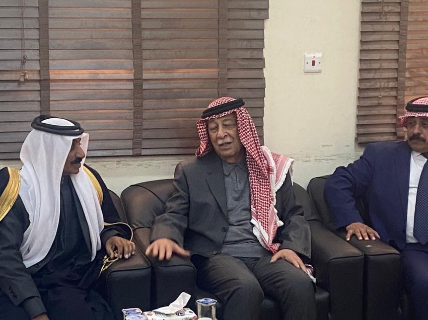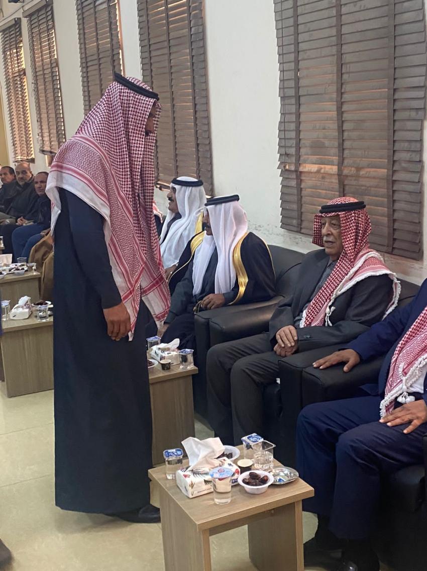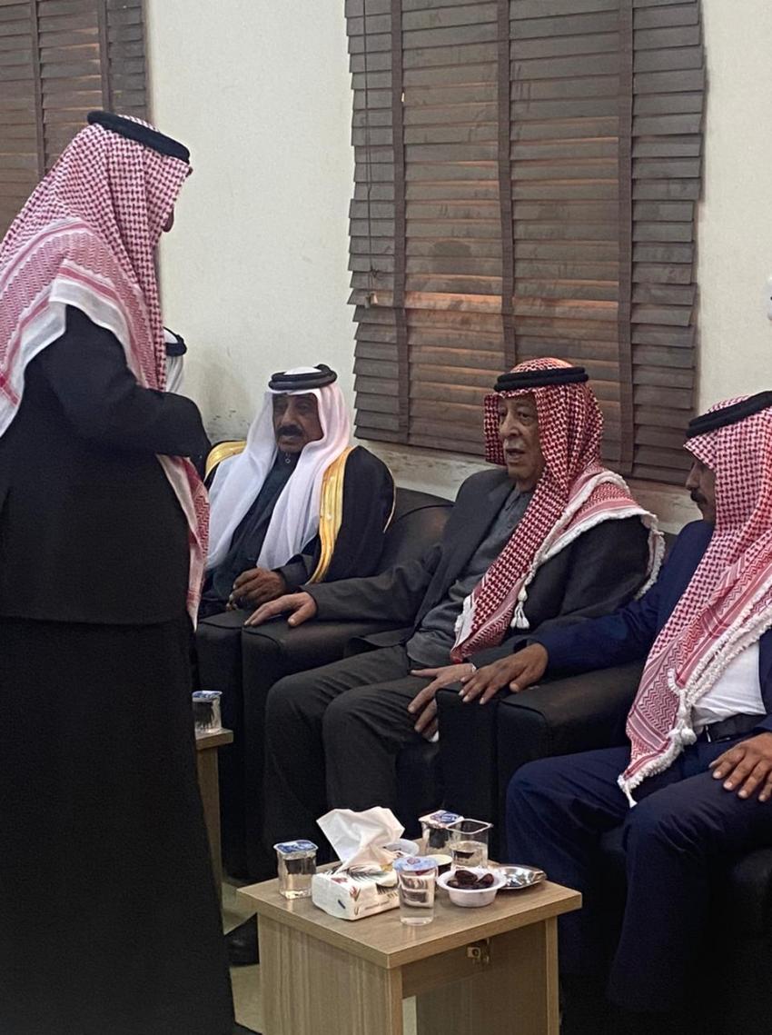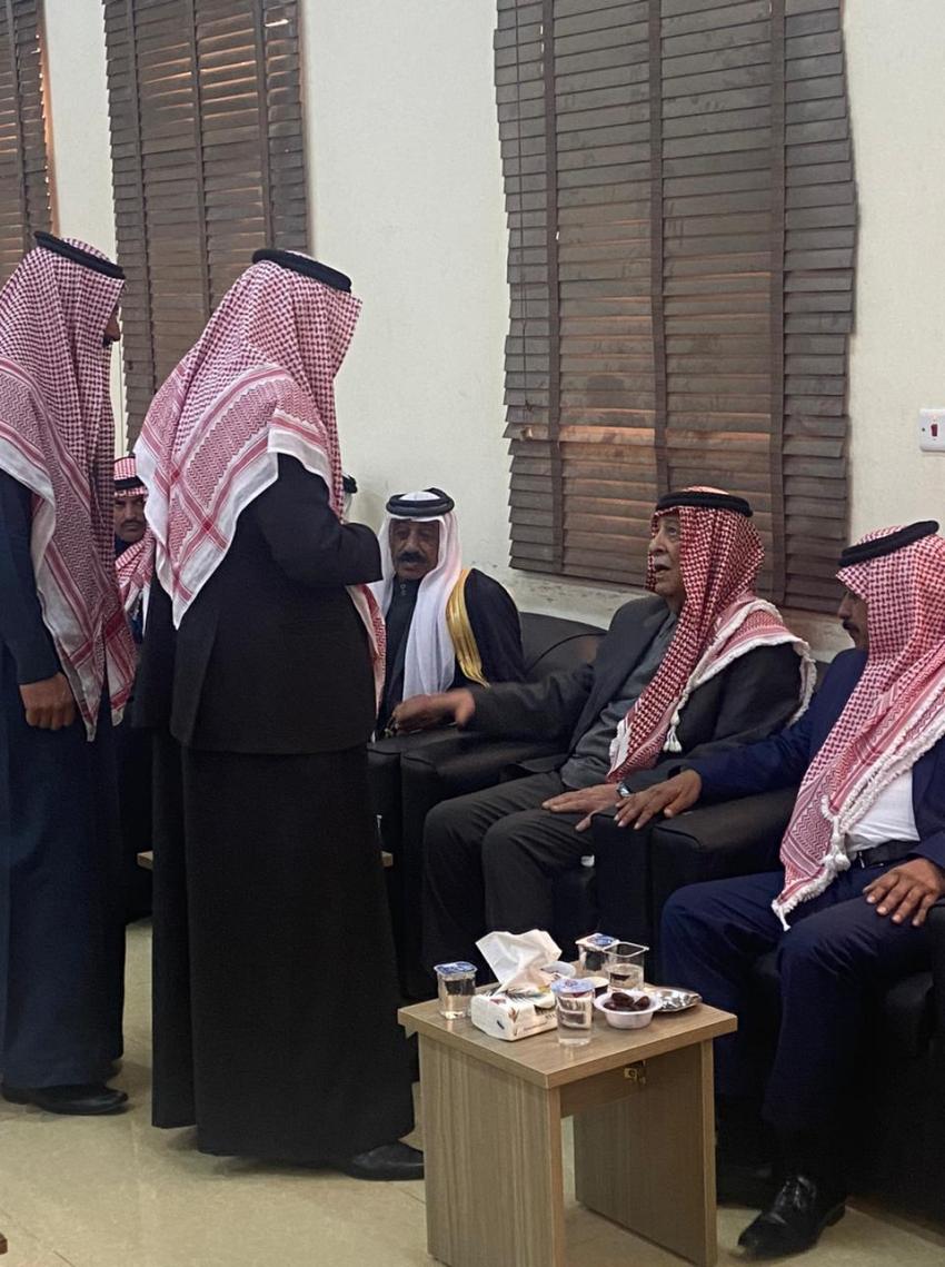 عمان جو -مندوبا عن جلاله الملك عبدالله الثاني بن الحسين، قدم رئيس الديوان الملكي الهاشمي يوسف حسن العيسوي واجب العزاء الى عشيرة المراغية الحجايا ، بوفاة المرحوم القاضي العشائري الشيخ فهد زعل المراغية الحجايا (ابو فلاح). |
