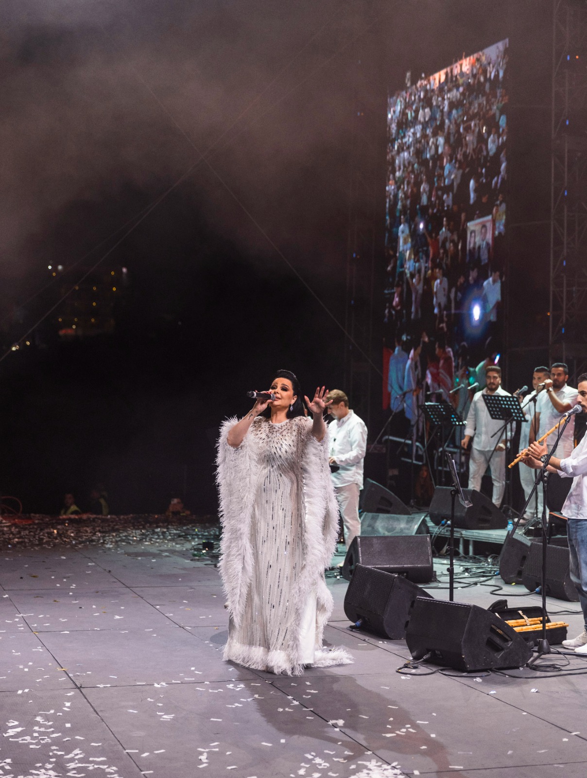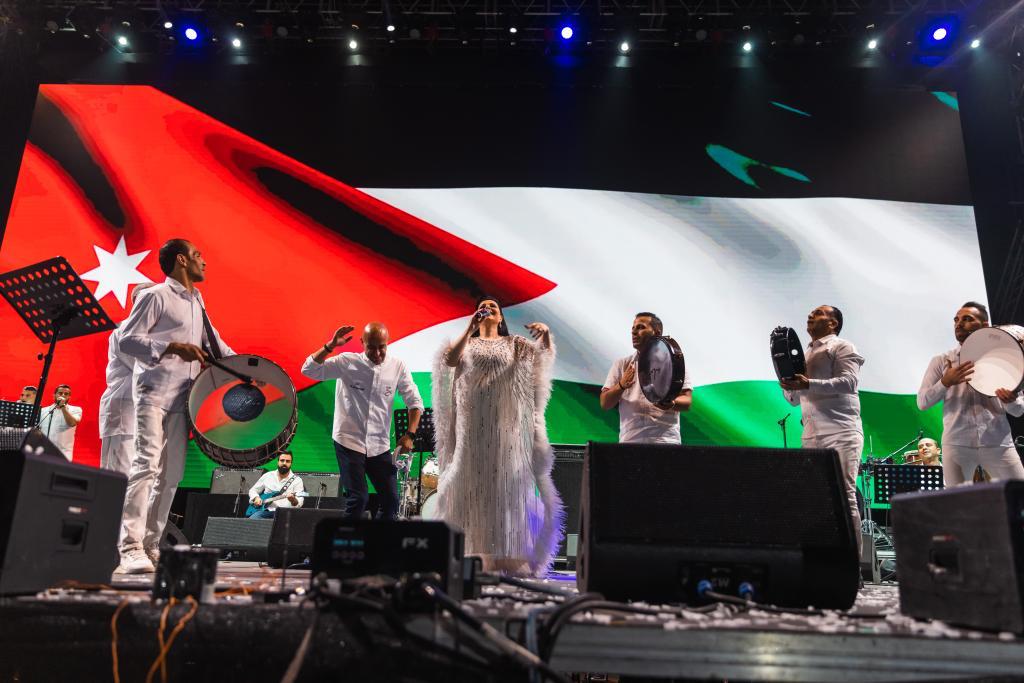 وارتدت ديانا وفرقتها الموسيقية الملابس البيضاء الكاملة فظهرت بفستانها كفراشة بيضاء تحلق فرحاً في سماء عمان، في اطلالة راقية صممتها زينب الكسواني تناسب الحدث تماماً، وتعكس ذوق النجمة الأردنية الرفيع، وما تحمله المناسبة من فرح وسلام جمعا أكثر من 15 ألف شخص في مشهدٍ وثقته كاميرات وسائل الاعلام العربية، وناشطو منصات "السوشيال ميديا"، وتناقله الجمهور بفرح غامر وحب كبير للعائلة الهاشمية.