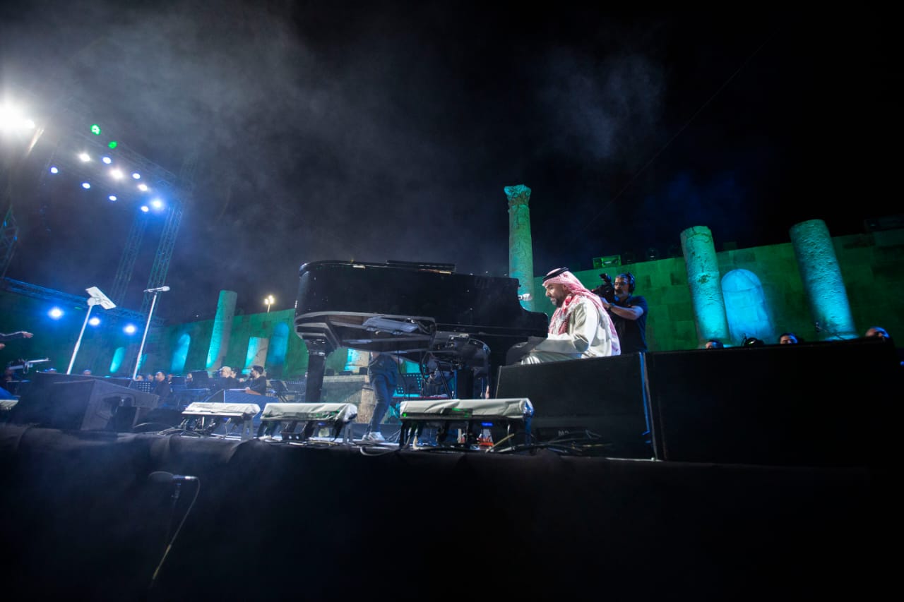 واشعل الفنان الجسمي المدرج احتفالا بزفاف ولي العهد، بحضره رئيس الوزراء بشر الخصاونة ووزير المالية محمد العسعس، ووزير السياحة والآثار مكرم القيسي.