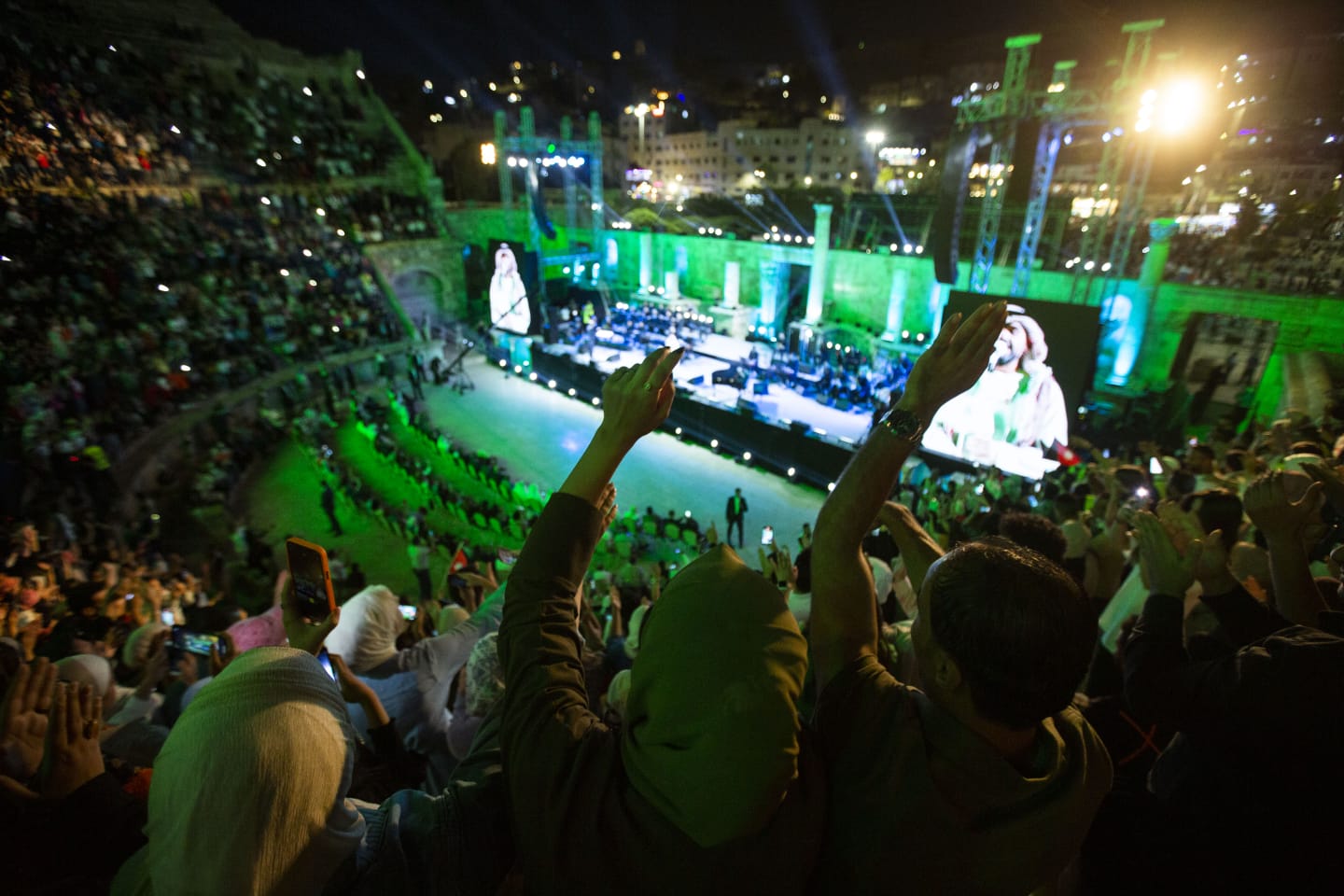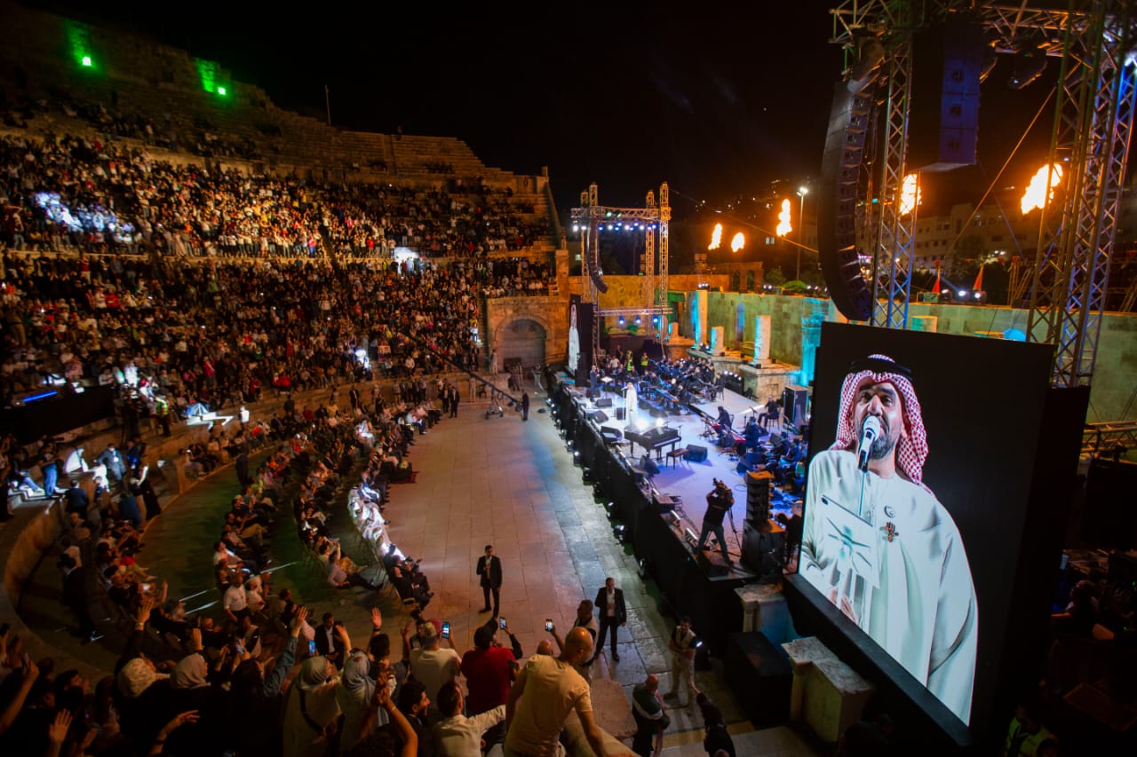 عمان جو - شهد المدرج الروماني في وسط البلد امس الاحد حضوراً جماهيرياً كبيراً لحفل أحياه الفنان الاماراتي حسين الجسمي وسط اجراءات تنظيمية مييسرة للحضور للدخول والخروج من المسرح.