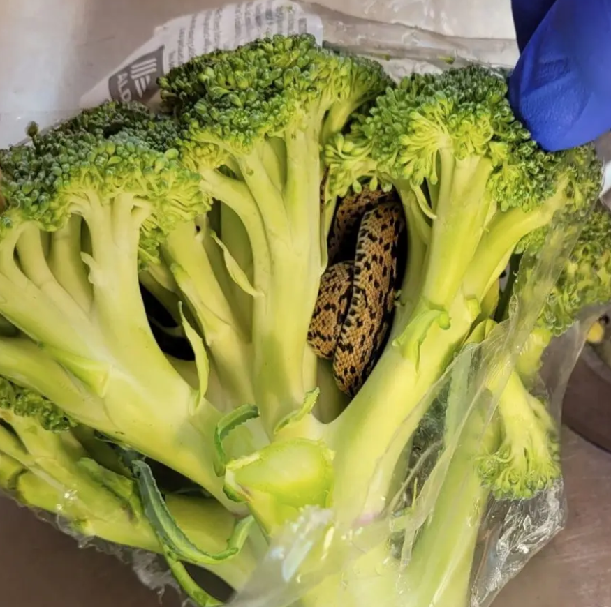 أصيب مسن بريطانى، بالخوف الشديد، عندما فتح كيسًا من البروكلي، ووجد ثعبانًا حيًا داخله، نيفيل لينتون، 63 عامًا، قال إن اكتشاف ثعبان فى الخضار فى ثلاجة منزله، كان تجربة "مخيفة".