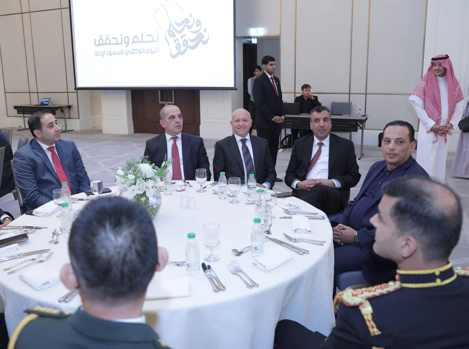 من جهته قال السفير السعودي: نحتفل اليوم بمناسبة اليوم الوطني الـ 93 لتوحيد السعودية، في ظل ما تشهده العلاقات السعودية الأردنية من تميز بالعُمق والرسوخ والثبات منذ الأزل؛ فالعلاقات وثيقة بين البلدين الشقيقين والتي يقودها خادم الحرمين الشريفين الملك سلمان بن عبد العزيز آل سعود، وأخيه جلالة الملك عبد الله الثاني، وسمو ولي العهد صاحب السمو الامير محمد بن سلمان وأخيه ولي العهد الامير الحسين بن عبدالله الثاني.