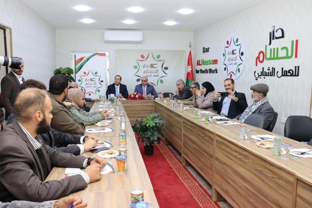 عمان جو- في جلسه حواريه سياسية بعنوان الأوضاع السياسية والإنسانية في غزة إستضافت دار الحسام للعمل الشبابي سعادة العين الدكتور إبراهيم البدور في محافظة الزرقاء