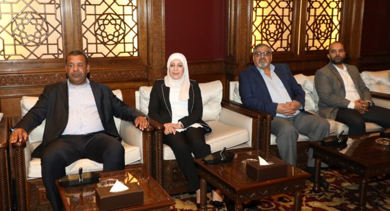 خلال لقائه اعضاء المكتب التنفيذي لاتحاد نقابات العمال ووفدا نسائيا