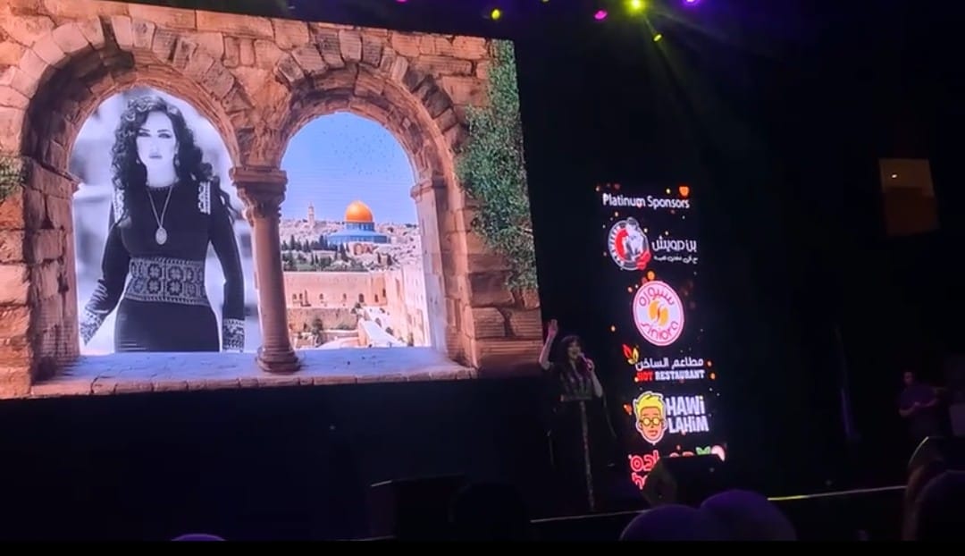الفنانة"غادة عباسي"،التي استقبلها الجمهور بالترحاب الكبير، والتي بالرغم من حالتها الصحية الا انها أصرت على الحضور والمشاركة في يوم التضامن، وغنت لفلسطين وصمود اهلها، وقدمت اغنية" نحنا الامل".