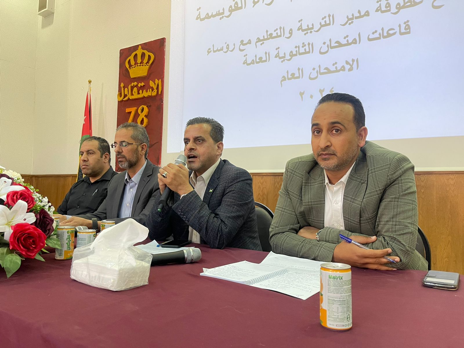 عمان جو - التقى مُدير تربية وتعليم لواء القويسمة أ. هاشم الزيود اليوم برؤساء قاعات امتحان الثانوية العامة بدورته الصيفية للعام الدراسي 2023-2024 وبحضور كُلاً من مدير الشؤون التعليمية ورئيس قسم الامتحانات ورئيس قسم الرقابة الداخلية في مدارس الملك عبدالله الثاني للتميز/ المقابلين.