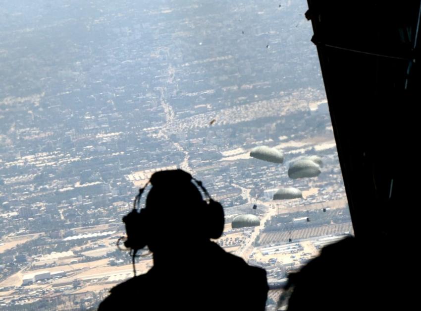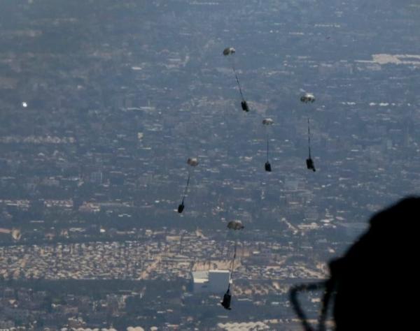 الجيش ينفذ 3 انزالات جوية لمساعدات على جنوب قطاع غزة