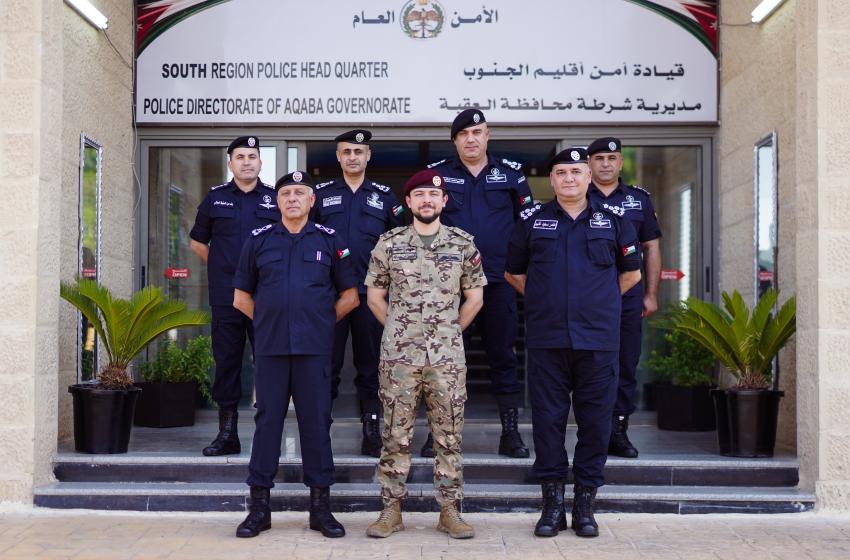 أكد سمو الأمير الحسين بن عبدالله الثاني، ولي العهد، اليوم الاربعاء، أهمية دور مرتبات مديرية الأمن العام في تعزيز الأمن بالمواقع السياحية والحفاظ على البيئة، خلال زيارة لمديرية شرطة محافظة العقبة.