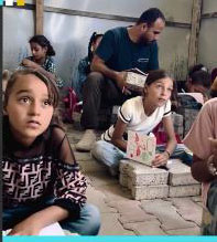 عمان جو – جلوس على الأرض، وطاولات من حجارة وطوب لطلبة غزة مع دفاتر ممزقة، بعد تدمير المدارس والجامعات على يد جيش الاحتلال الإسرائيلي، وذلك في مشهد صمود بطولي جديد.