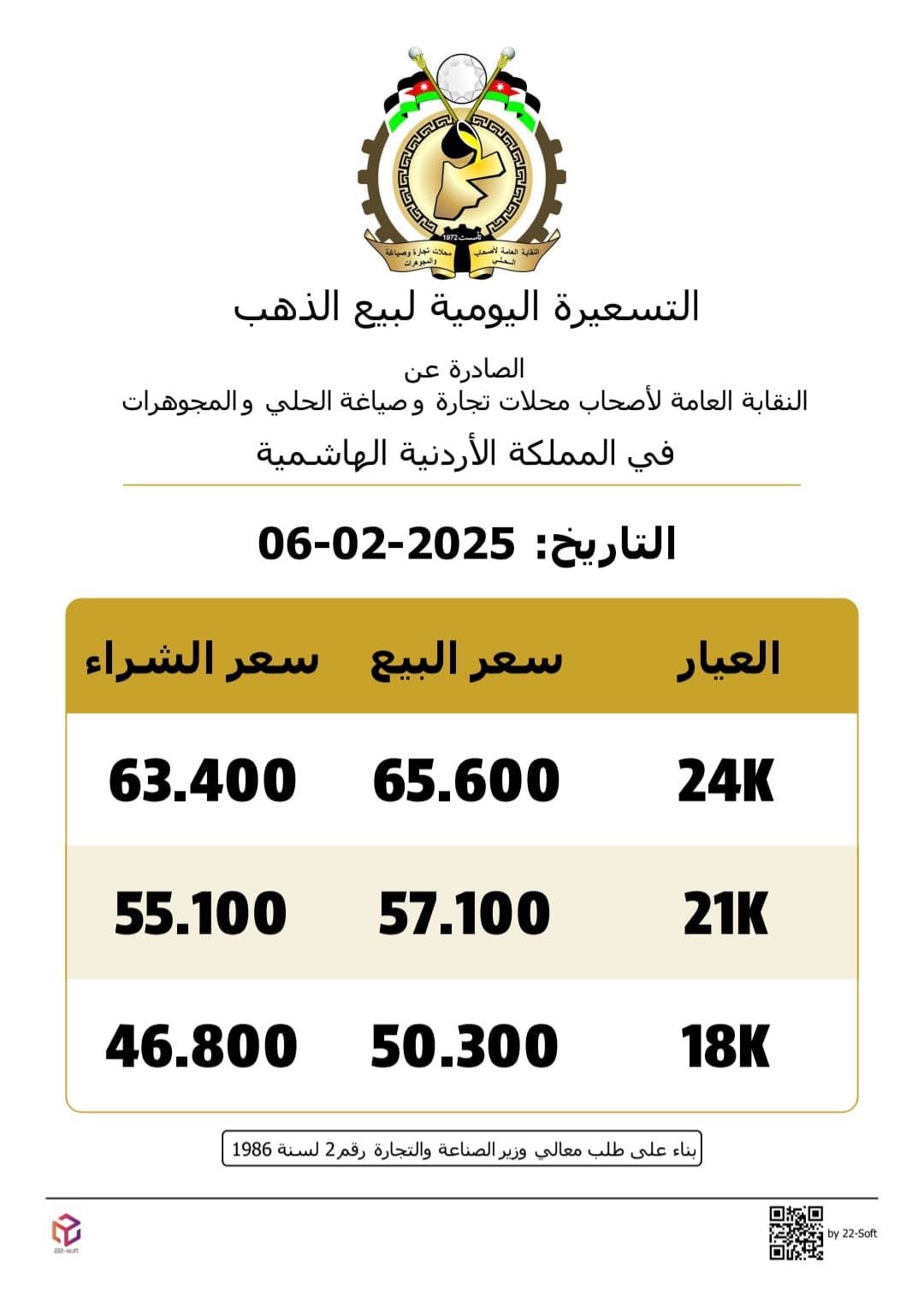 عمان جو- انخفضت أسعار الذهب في السوق المحلية الخميس، بحسب التسعيرة المسائية الصادرة عن النقابة العامة لأصحاب محلات بيع وصياغة الحلي والمجوهرات. وتالياً الأسعار:
