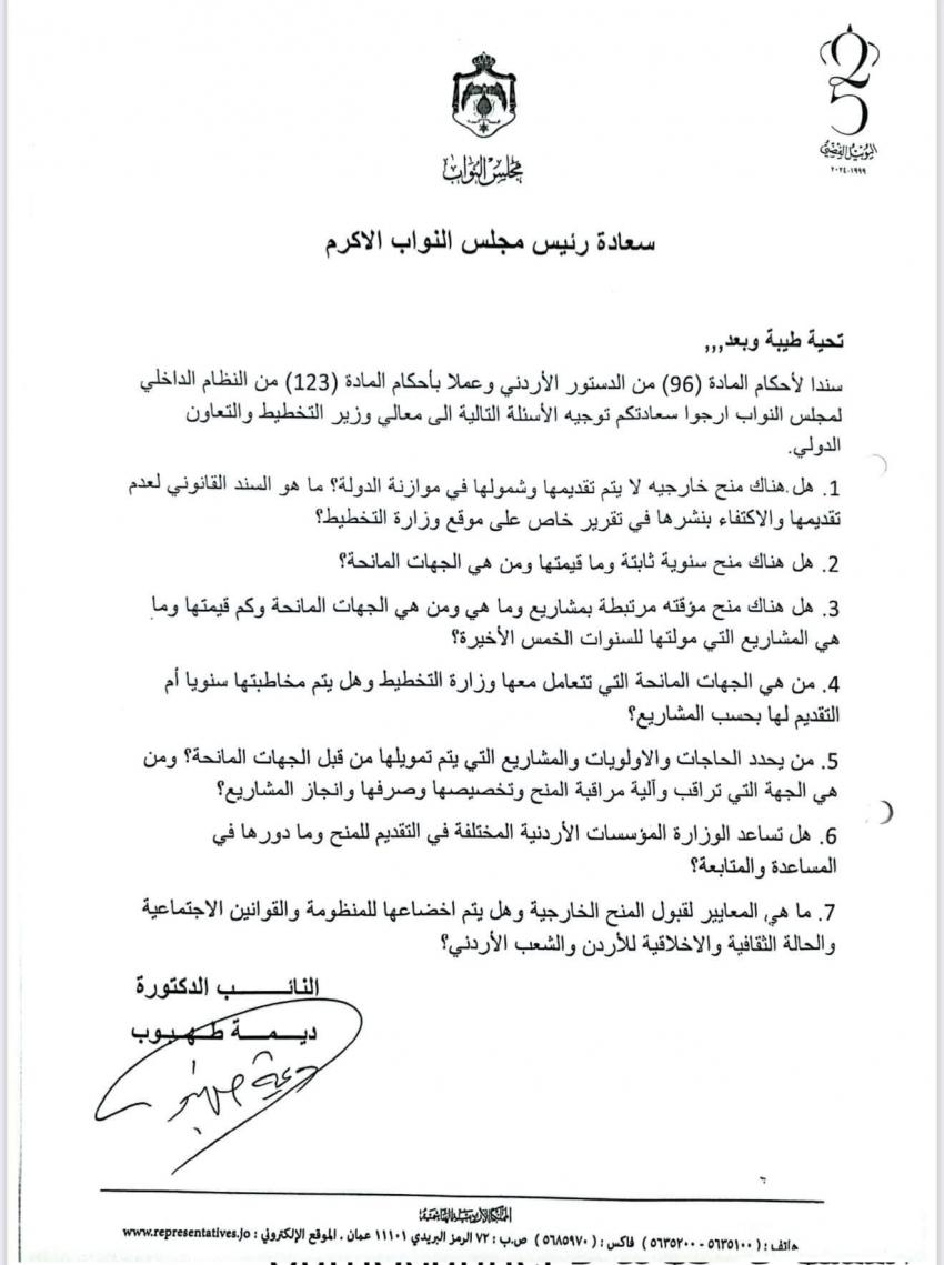 طهبوب نقلا عن وزيرة التخطيط: لا داع للقلق بشأن المنح ولا أحد يستطيع لي ذراع الأردن