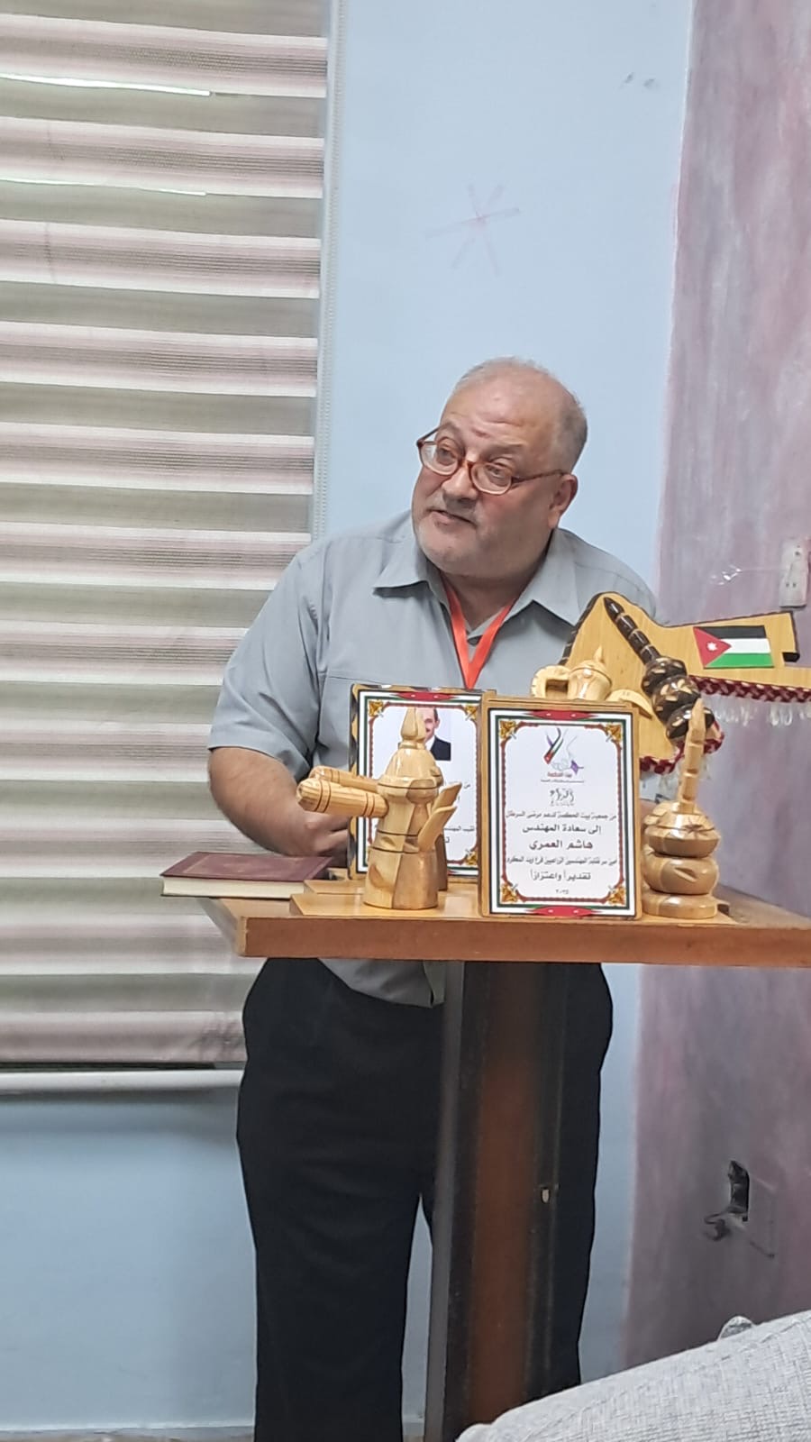 وفي نهاية اللقاء قامت راعية الحفل السيدة فايزة الزعبي بتكريم المشاركين بالحفل بتكريم المهندس علي أبو نقطة بدرع الجمعية تقديرا لجهوده المتميزة ، وقد حضر الحفل قامات وطنية واجتماعية وثقافية .