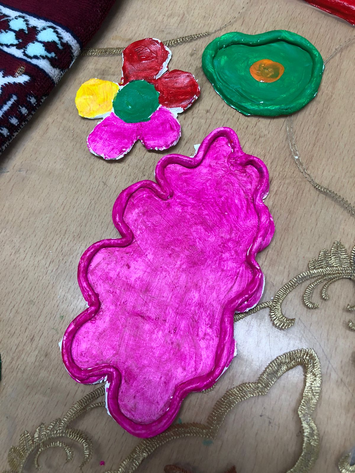 قدمت الورشة المدربة آلاء عضيبات، التي عرضت مجموعة من التصاميم والأعمال اليدوية باستخدام الطين والصلصال، بأشكال متنوعة.