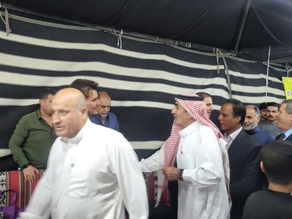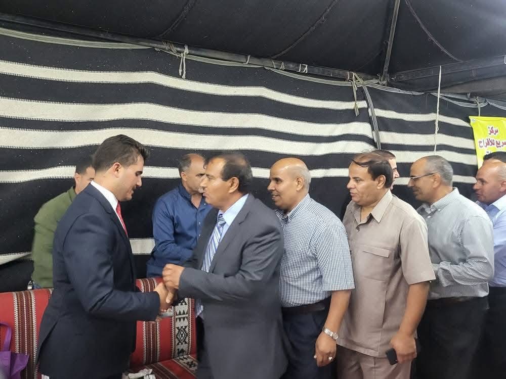 عمان جو- شارك نحو 8 آلاف أردني في حفل زفاف المحامي معاوية نجل محافظ الزرقاءفراس مسلم أبو قاعود، الذي أقيم في بيت شعر ضخم نصب على مدخل مادبا الغربي.