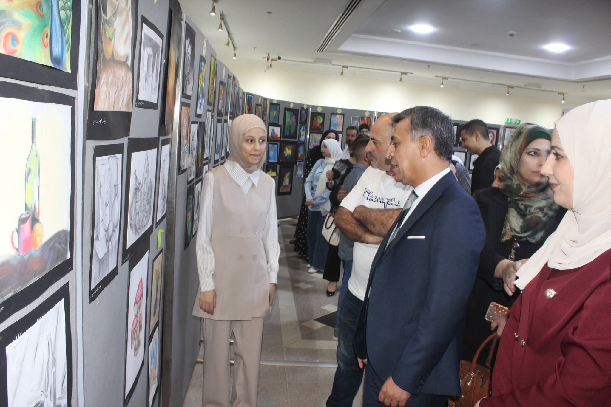 واشتمل برنامج الحفل على معرض للفن التشكيلي لطلبة المعهد ، وعرض لوحات للخط العربي.