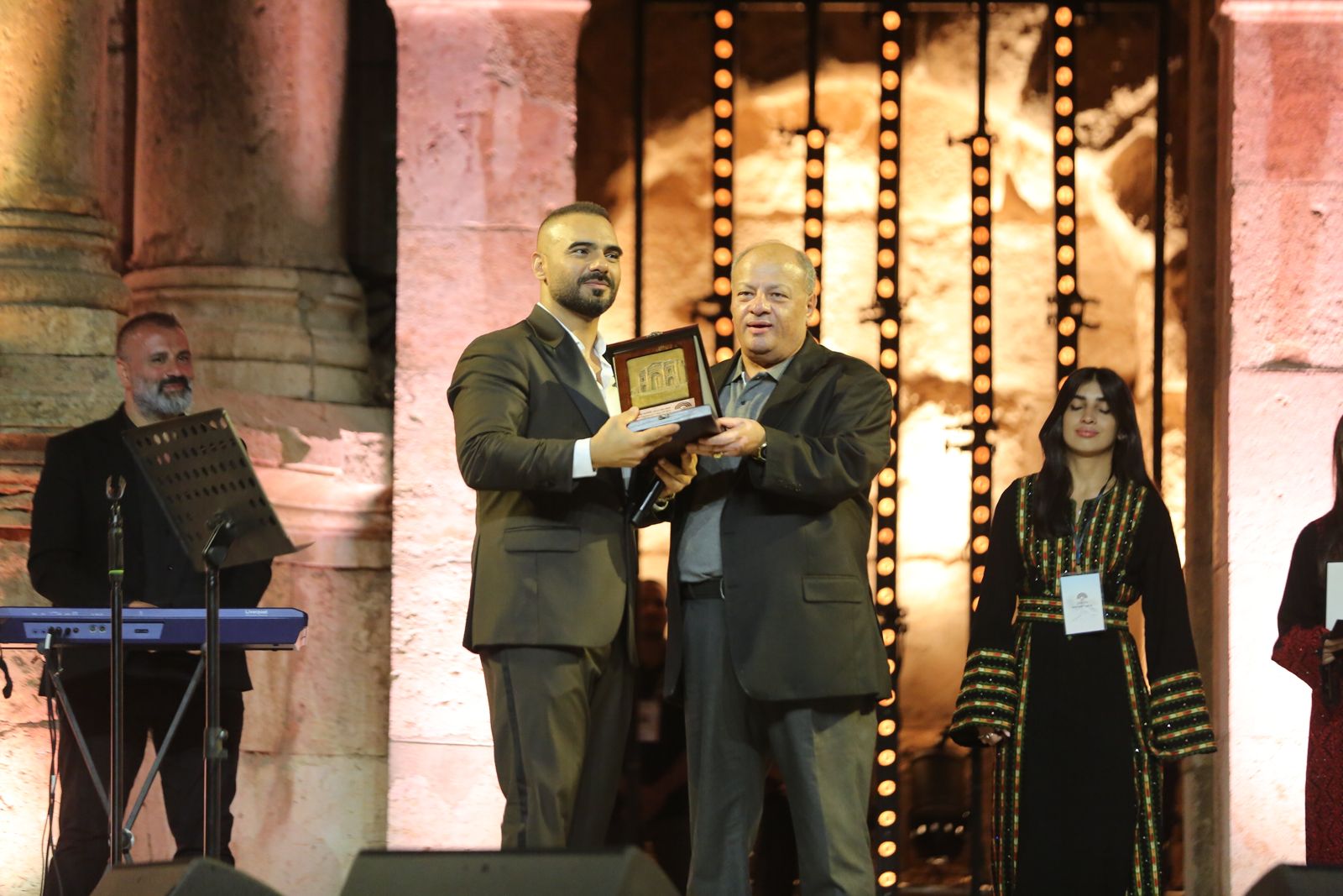 وقام أيمن سماوي مدير المهرجان بتكريم الفنان عطية.