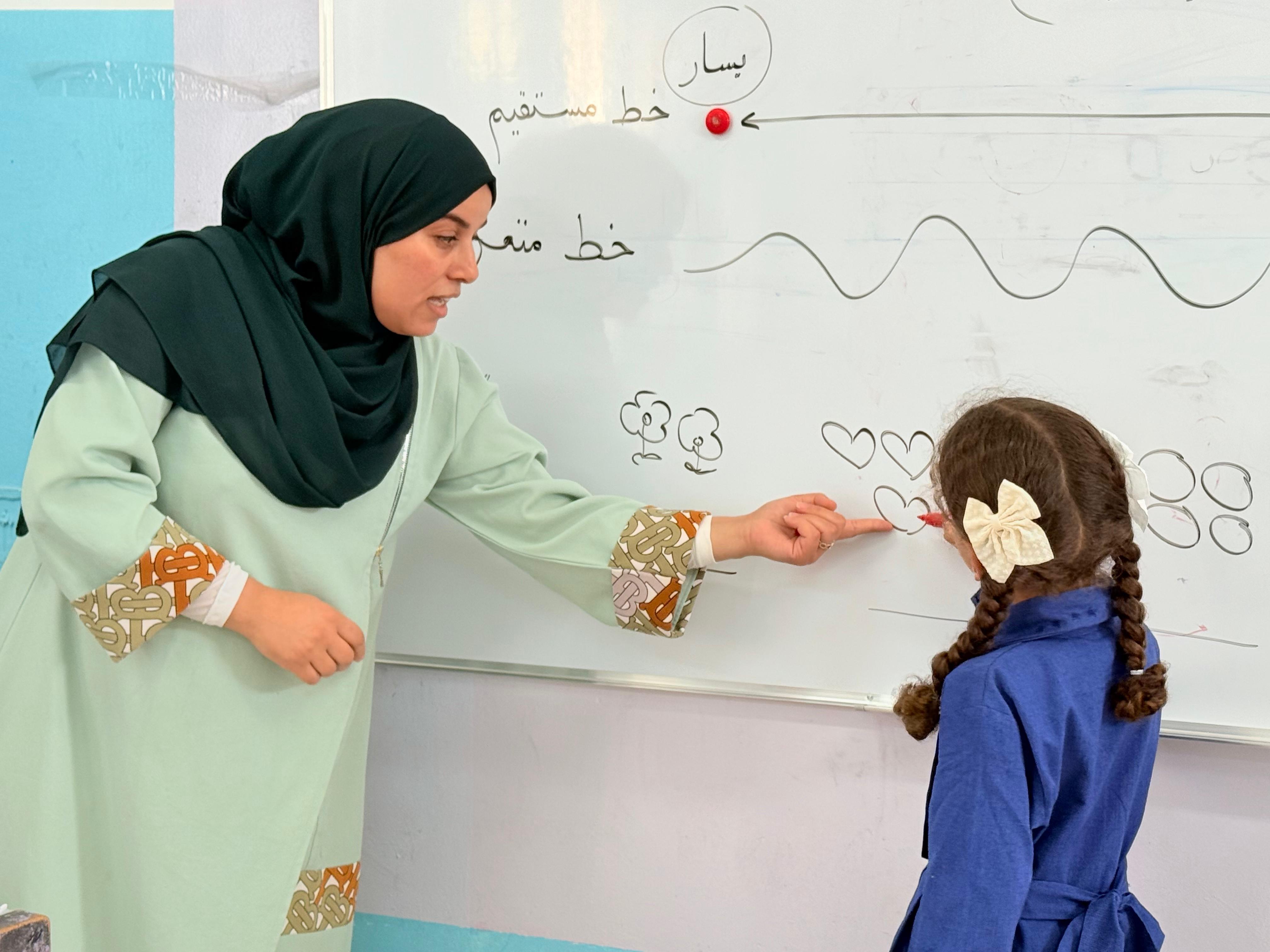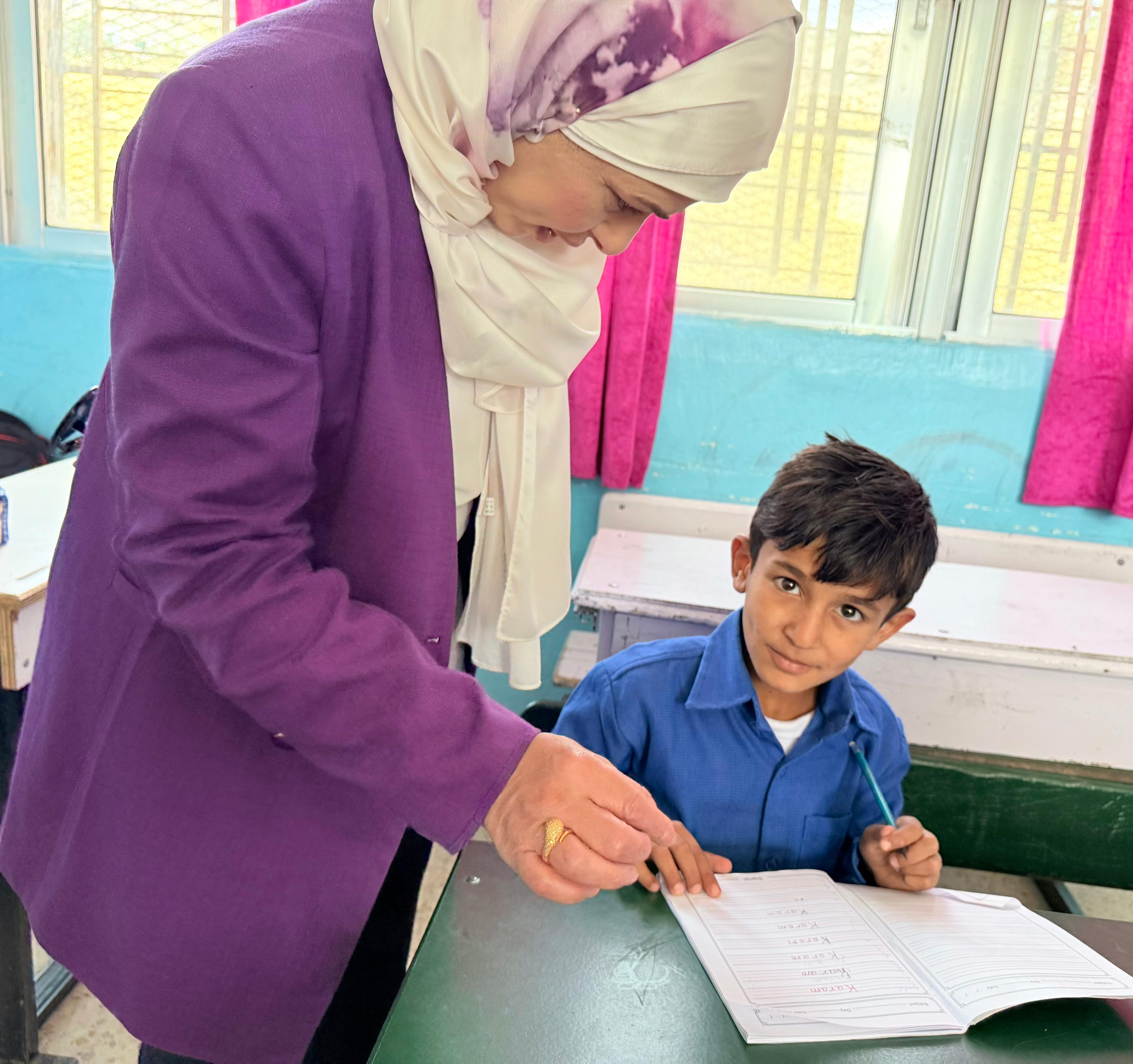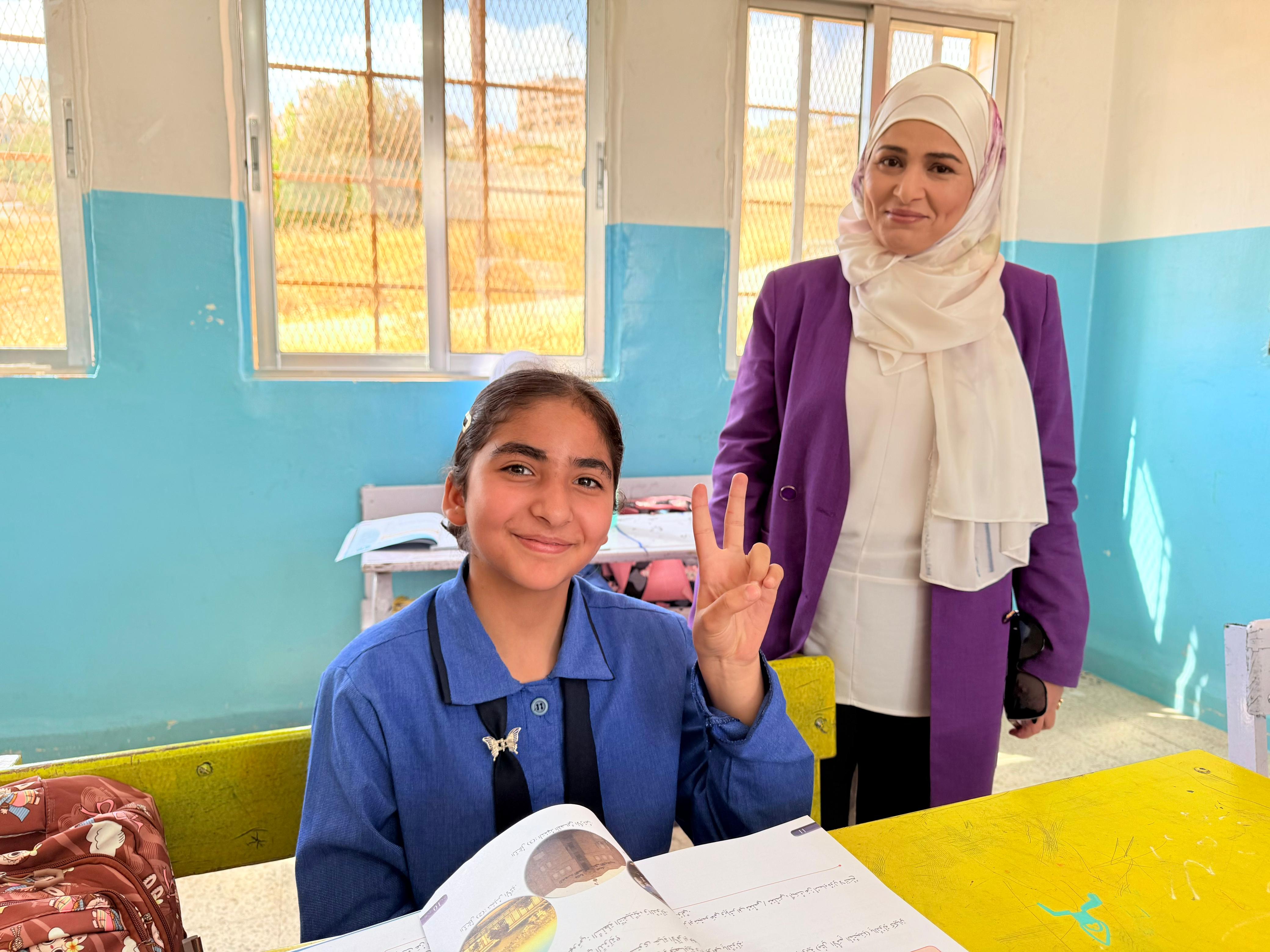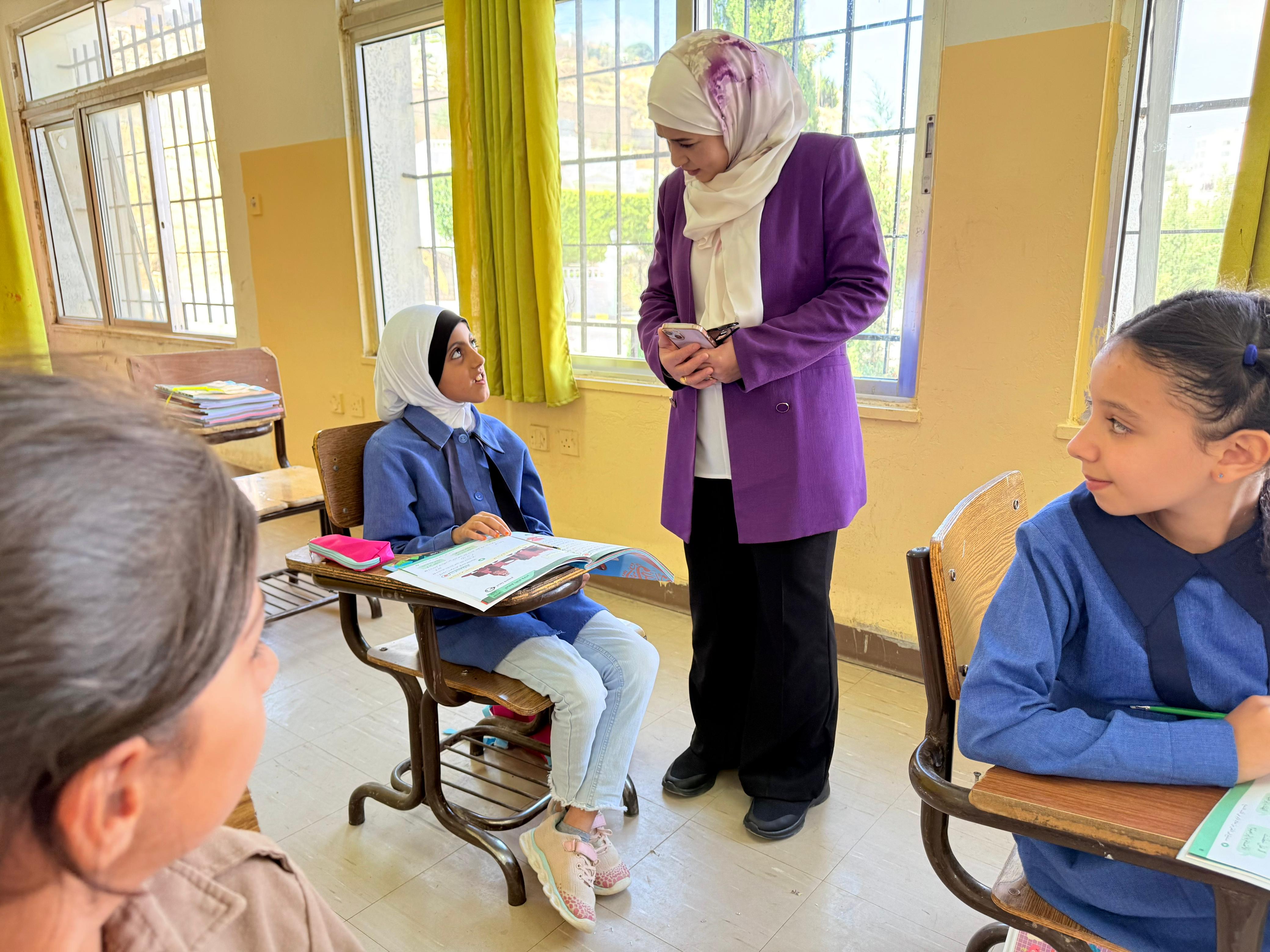 الخريشا تتابع سير العملية التعليمية في مدارس أم البرك وتشارك جانبًا من المهارات الصفية