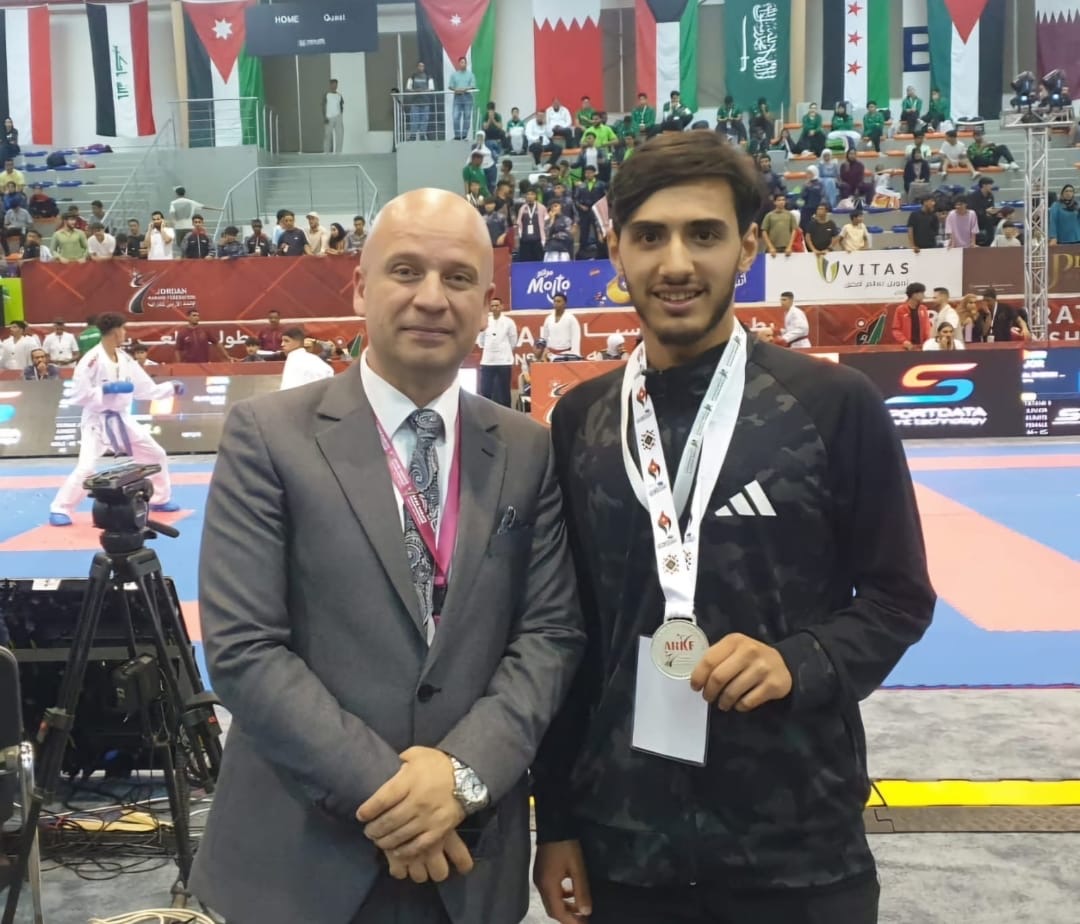 عمان جو- حقق طالب جامعة البترا ولاعب المنتخب الوطني الأردني للكراتيه موسى نايف عويمر الميدالية الفضية في وزن تحت 67 كيلوغرامًا لفئة الرجال، وذلك في البطولة العربية الخامسة عشرة للكراتيه التي استضافها الاتحاد الأردني للكاراتيه.
