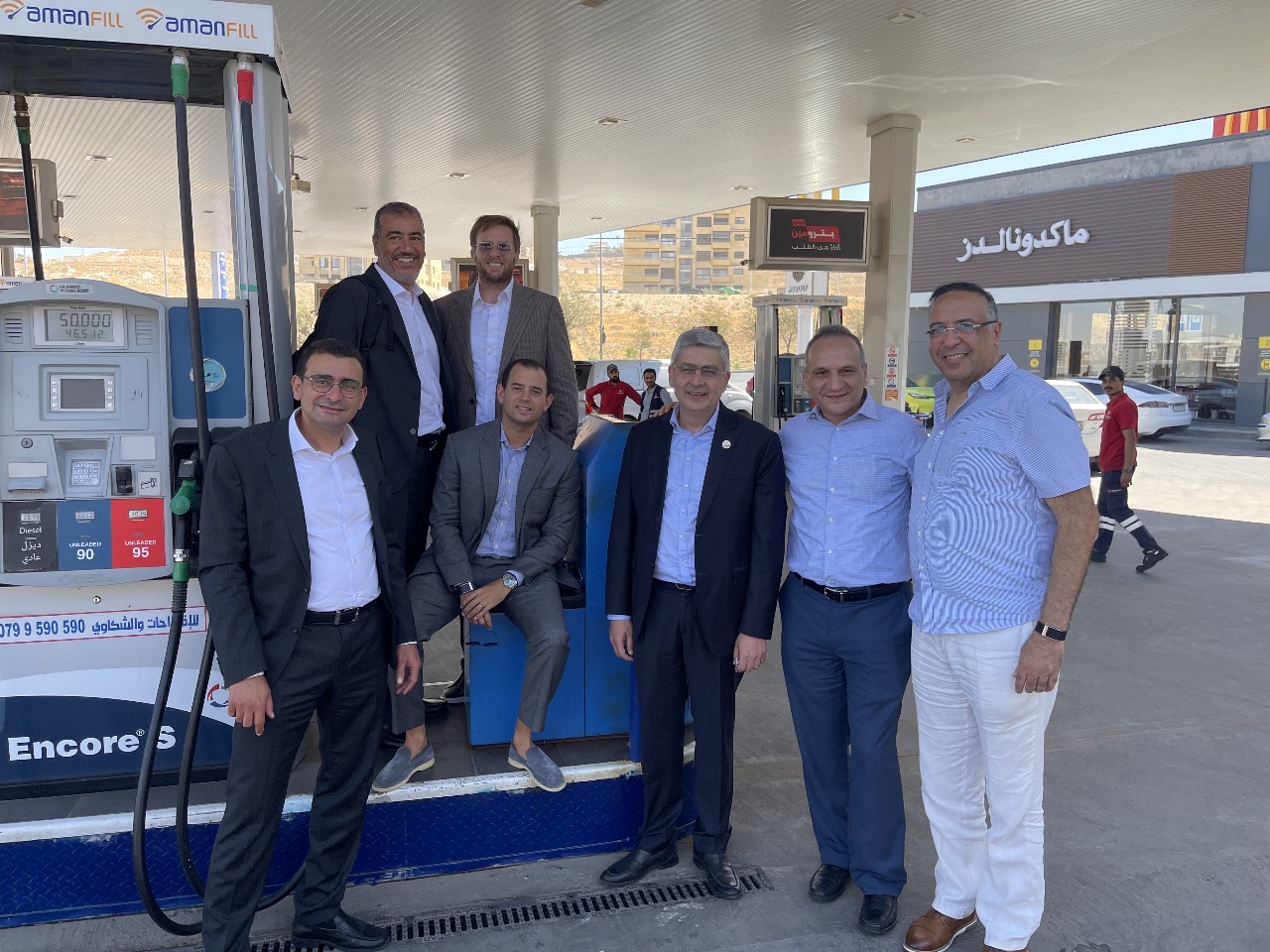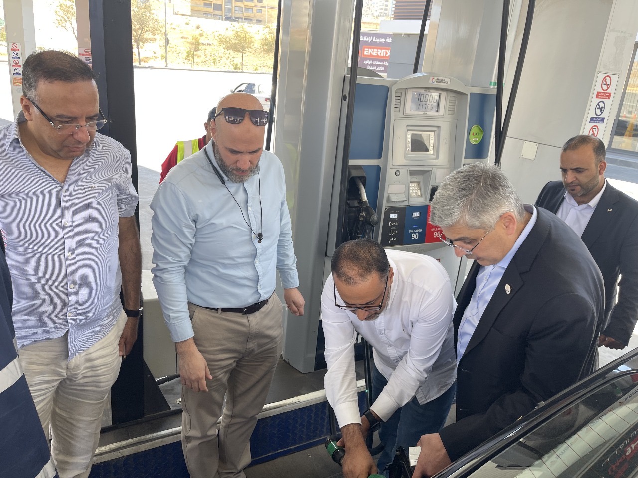 ومن ثم تم عمل زيارة ميدانية لاحد محطات الشركة النموذجية للاطلاع على الخدمات والحلول المتواجدة في محطات المناصير للزيوت والمحروقات وتجربة تعبئة من خلال خدمة AmanFill من قبل الحضور.