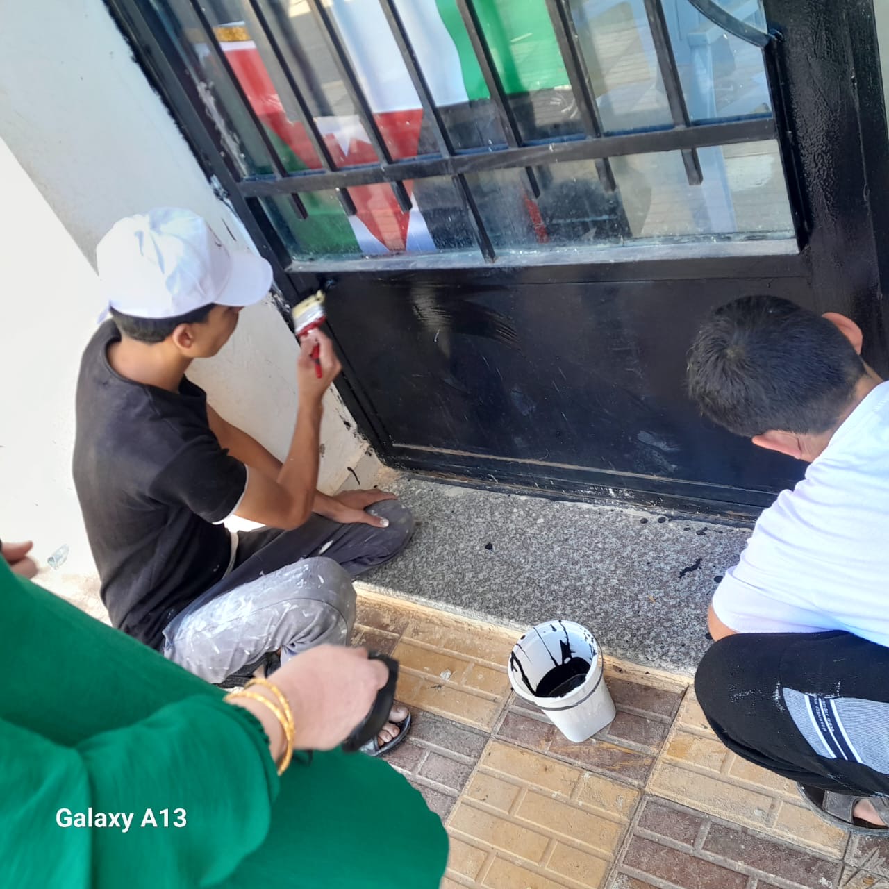 أشرف على الورشة المتطوعان صبرين الدومي وجواد بني عامر، حيث تضمنت تدريبات عملية في إزالة الرطوبة عن الجدران وتنظيفها وإعادة دهنها، إلى جانب صيانة الخزائن الحديدية، ودهن الباب الرئيسي وباب مدخل المركز الخارجي. كما اشتملت على تنفيذ جدارية خشبية، وتركيب رفوف من الحديد والزجاج.