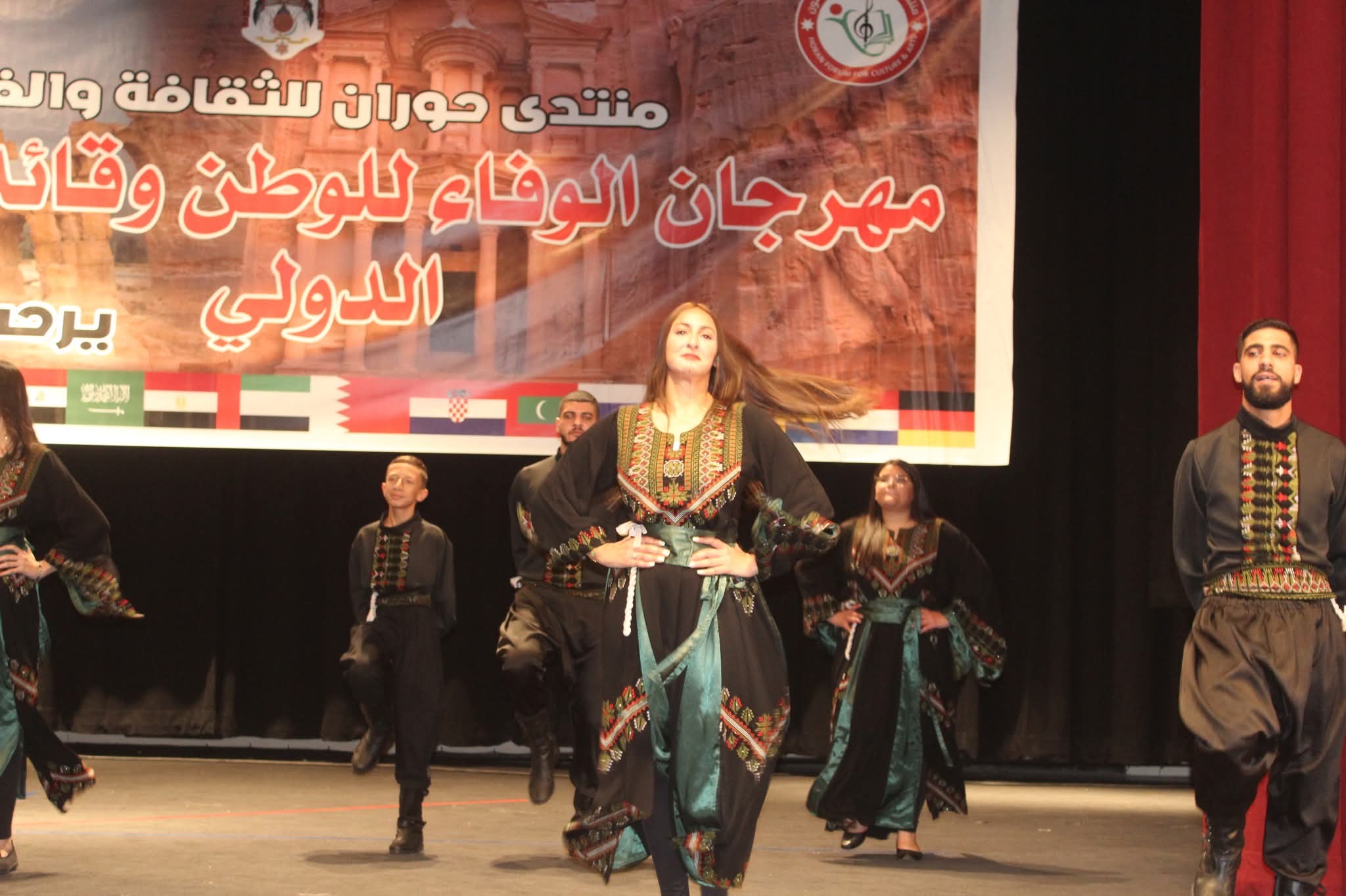 انطلاق حفل فعاليات مهرجان الوفاء للوطن وقائد الوطن الدولي العاشر، والذي ينظمه منتدى حوران للثقافة والفنون سنويا بمشاركة أردنية وعربية ودولية.