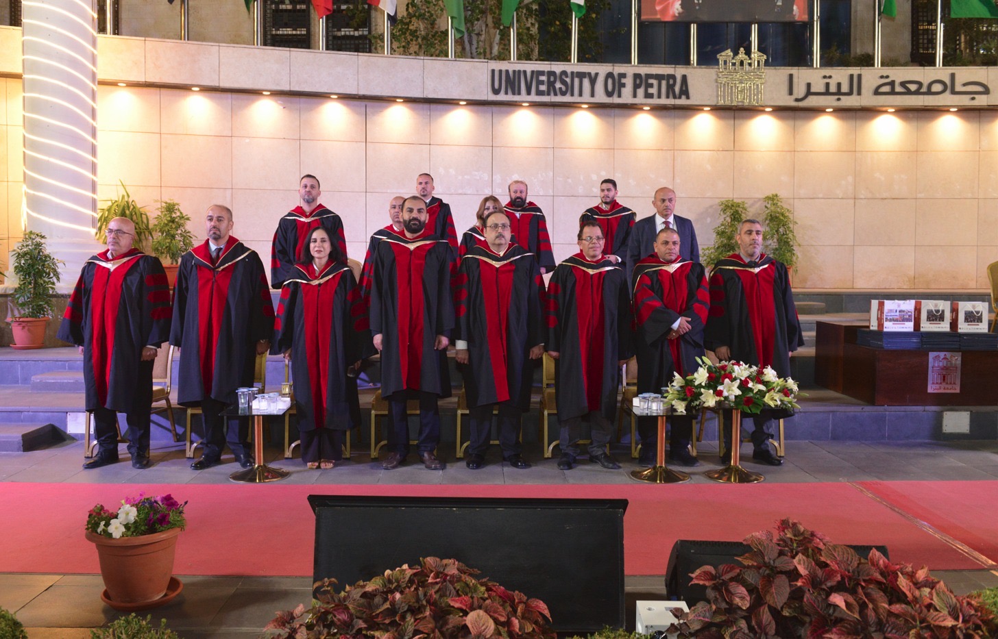 رعى الأستاذ الدكتور مياس الريماوي، نائب رئيس جامعة البترا للشؤون الأكاديمية، مندوبًا عن رئيس الجامعة، حفل تخريج الفوج الثاني عشر من طلبة الدبلومات التدريبية، والذي شمل تخصصات: التصميم الداخلي والديكور، الأمن السيبراني، التصميم والتحريك الجرافيكي، إدارة المستشفيات، وإدارة الأعمال، بمشاركة (80) طالبًا وطالبة.