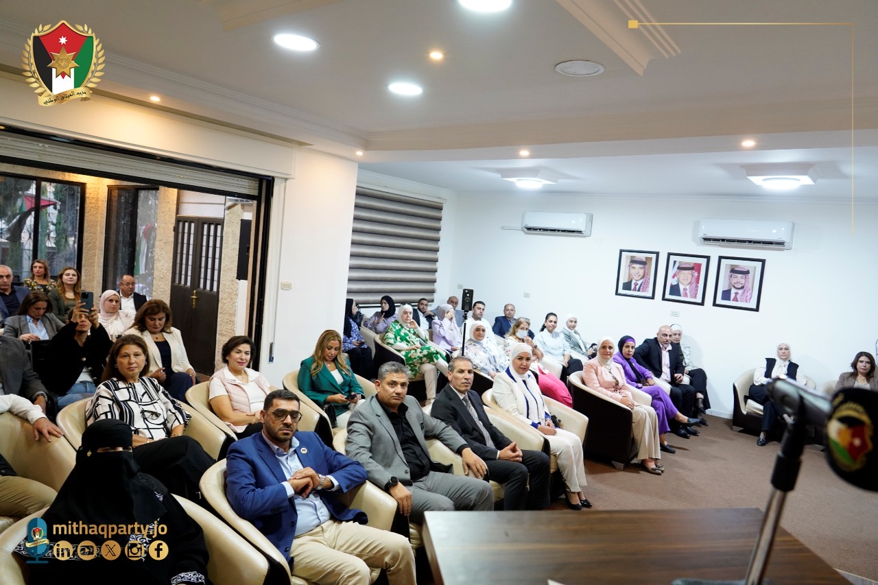 وأكد الأمين العام للحزب بالوكالة عبيد ياسين أن “كلنا فخر واعتزاز بدور المرأة الاردنية في حزب الميثاق الوطني، إيماناً منا بأهمية مشاركتها”، موضحاً أن الهدف الأساس للحزب هو الوصول إلى الحكومات البرلمانية وإيصال صوت المجتمع بكل مكوناته للحكومة.