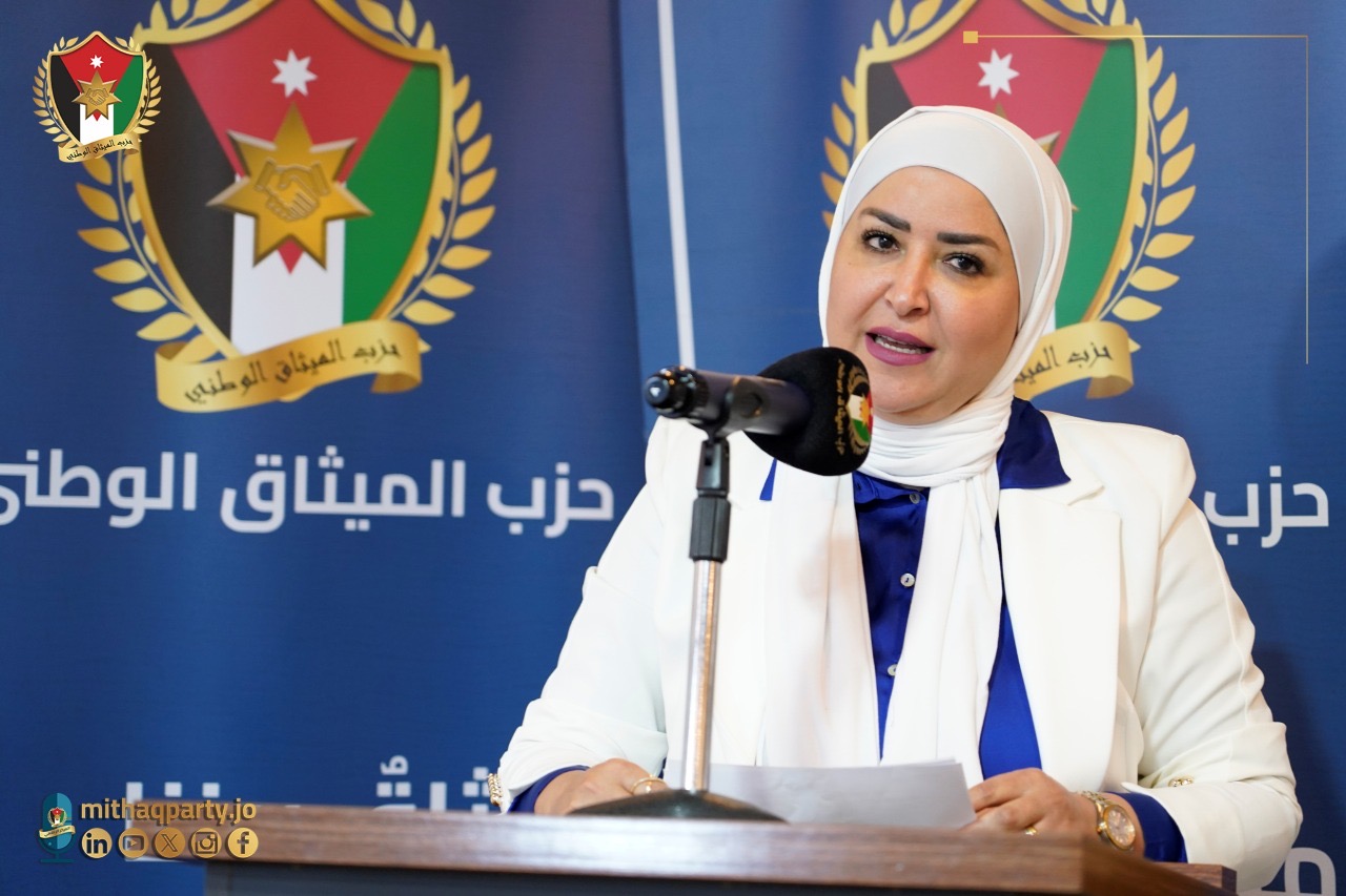 من جانبها أكدت مساعد الأمين العام لشؤون تمكين المرأة والأسرة السيدة ميادة شريم أن الحزب السياسي والوطني والوسطي يضع المرأة في صلب استراتيجيته، باعتبارها ركيزة أساسية في تحقيق الاستدامة، مشددة على أن حزب الميثاق الوطني يعمل على تمكين المرأة كعضو فاعل في المجتمع.