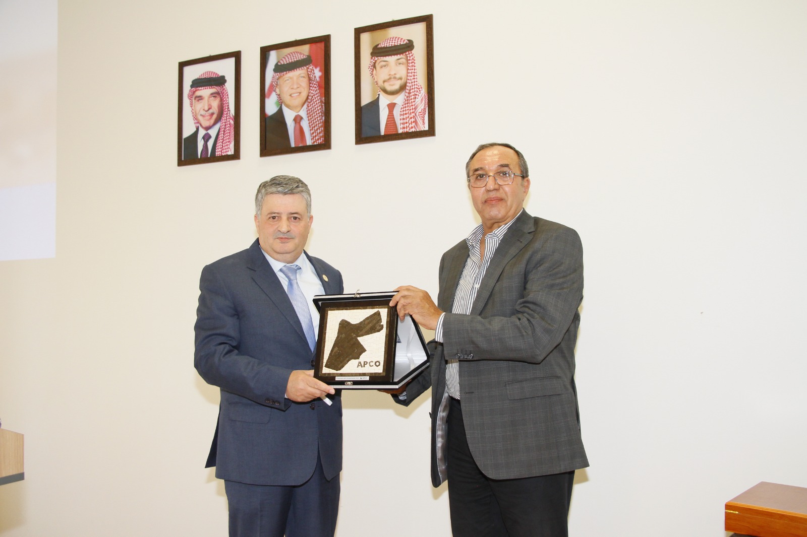 وفي نهاية الزيارة تبادل المهندس محمد المعايطة عضو مجلس إدارة شركة العطارات للطاقة واسعد ابراهيم ناجي العزام رئيس هيئة إدارة جمعية عَون الثقافية الوطنية الدروع التذكارية