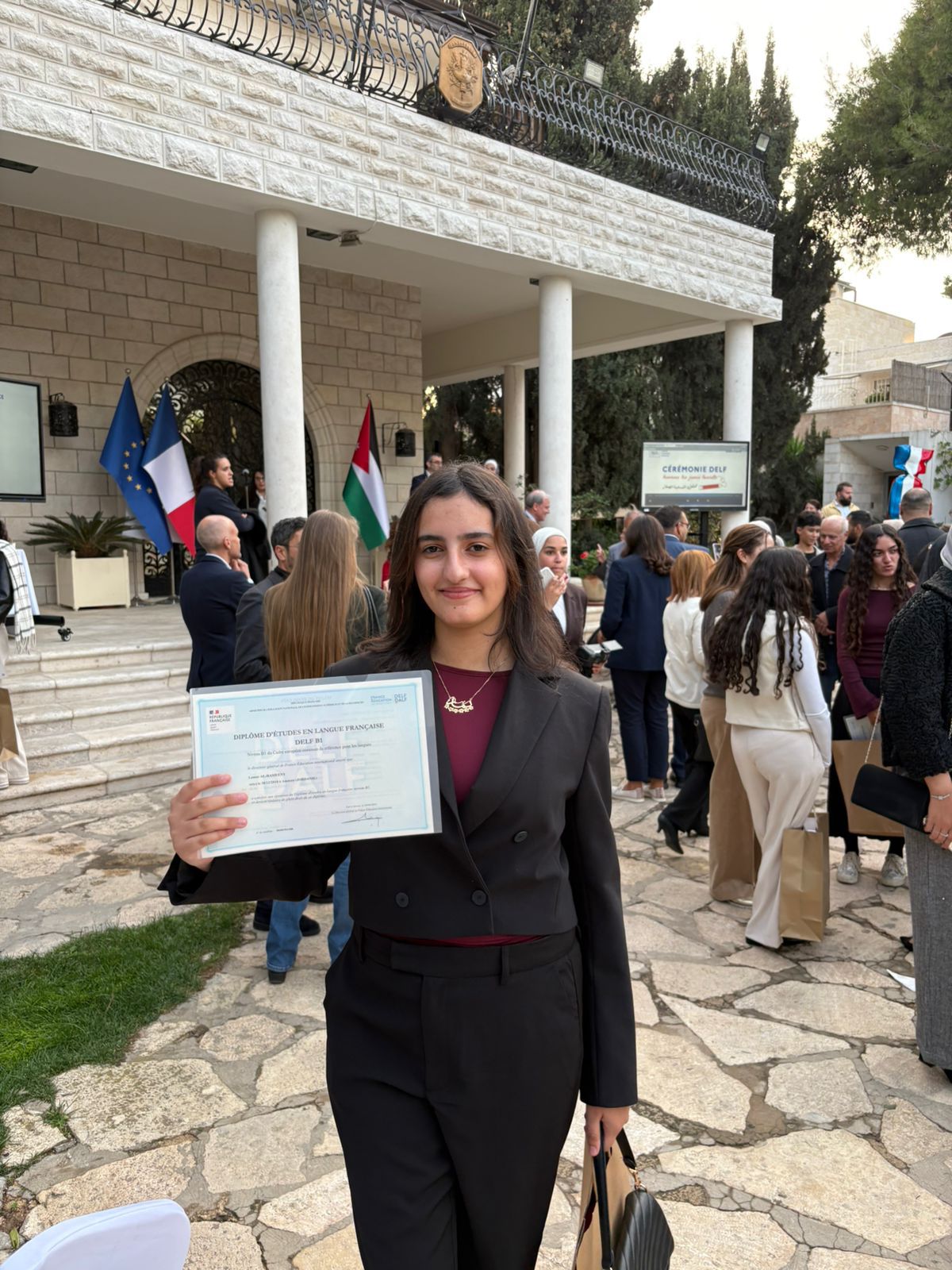 لمار الراميني تتفوق في امتحان اللغة الفرنسية والسفير الفرنسي في عمان يكرمها