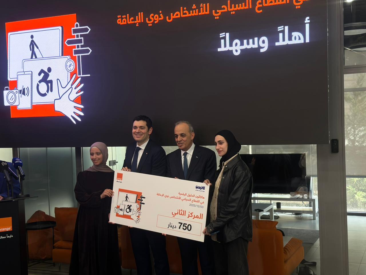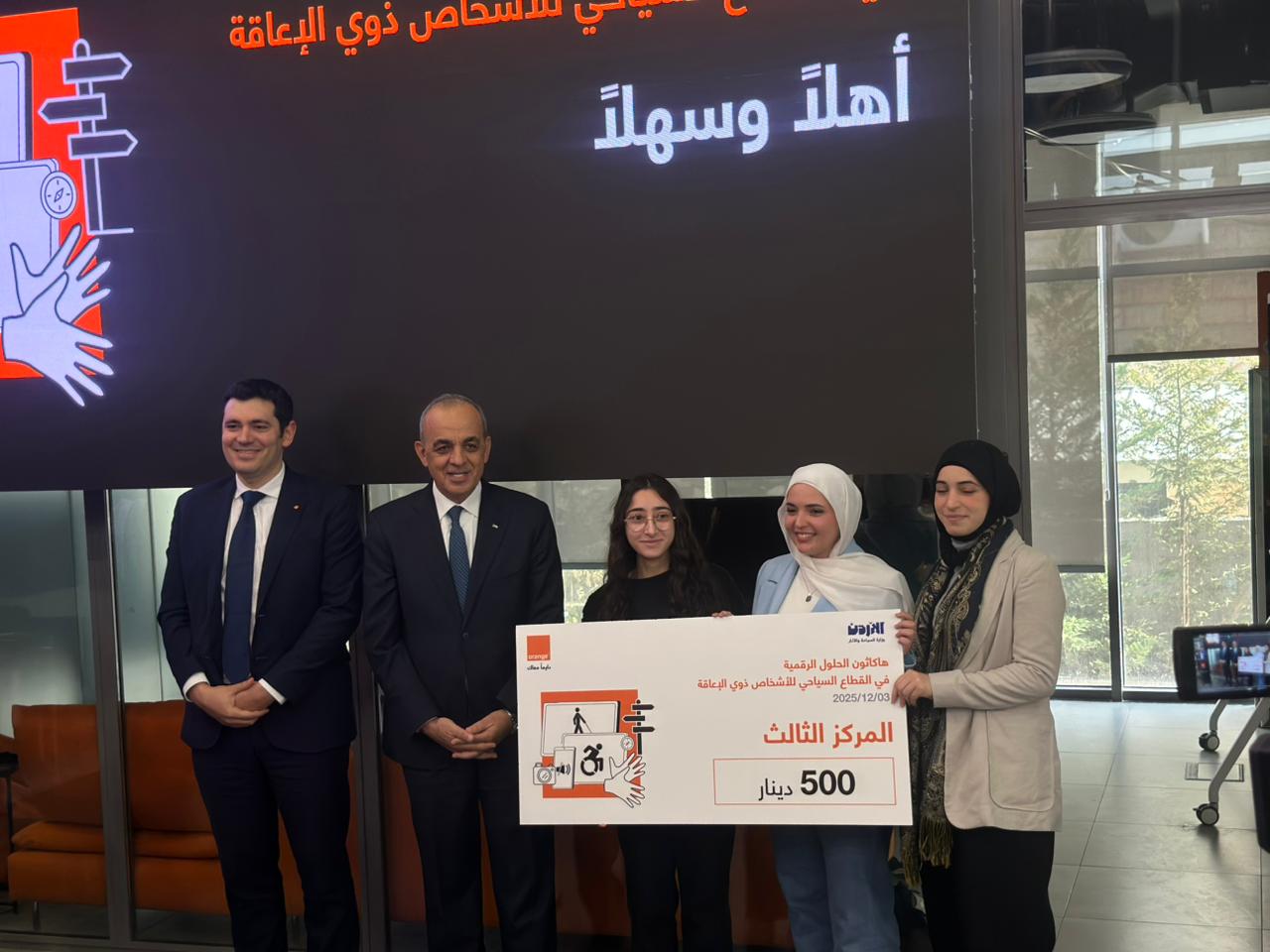 تحت رعاية وحضور معالي وزير السياحة والآثار، الدكتور عماد حجازين، أعلنت أورنج الأردن، وبمناسبة اليوم العالمي للأشخاص ذوي الإعاقة الذي يصادف 3 كانون الأول، عن الفائزين في "هاكاثون الحلول الرقمية في القطاع السياحي للأشخاص ذوي الإعاقة"، الذي أطلقته بالتزامن مع يوم السياحة العالمي، وذلك في إطار جهودها لتعزيز الابتكار وتمكين الأشخاص ذوي الإعاقة من المشاركة الكاملة في التجربة السياحية، وذلك ضمن مبادراتها المبتكرة تحت مظلة حملة "قدراتنا مختلفة، ولكن إمكانياتنا أكيدة"، الهادفة إلى تعزيز الشمول الرقمي وتمكين جميع أفراد المجتمع.
