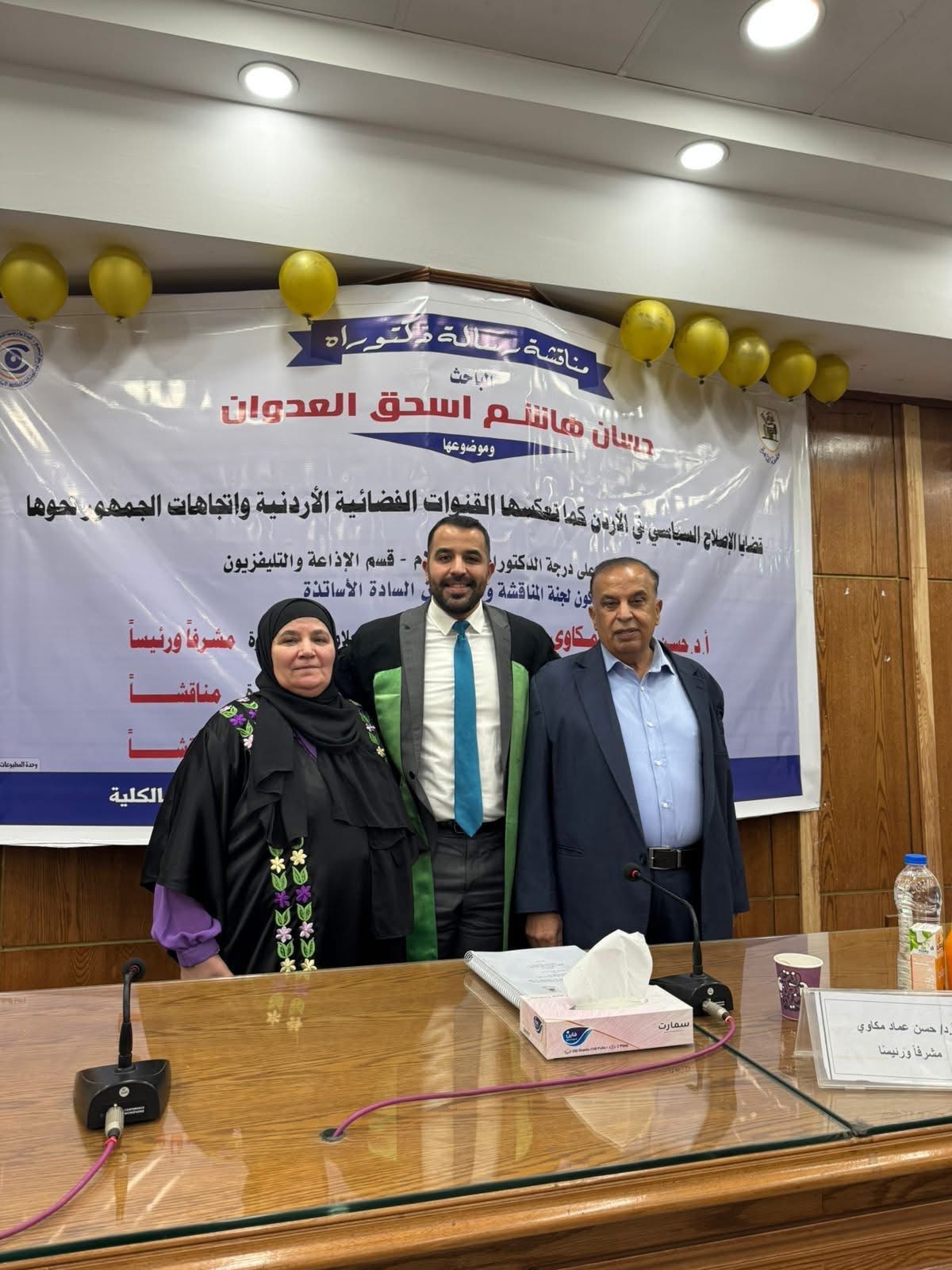 عمان جو - نبارك للدكتور حسان هاشم العدوان حصوله على درجة الدكتوراه في الإعلام من جامعة القاهرة عن رسالته الموسومة: