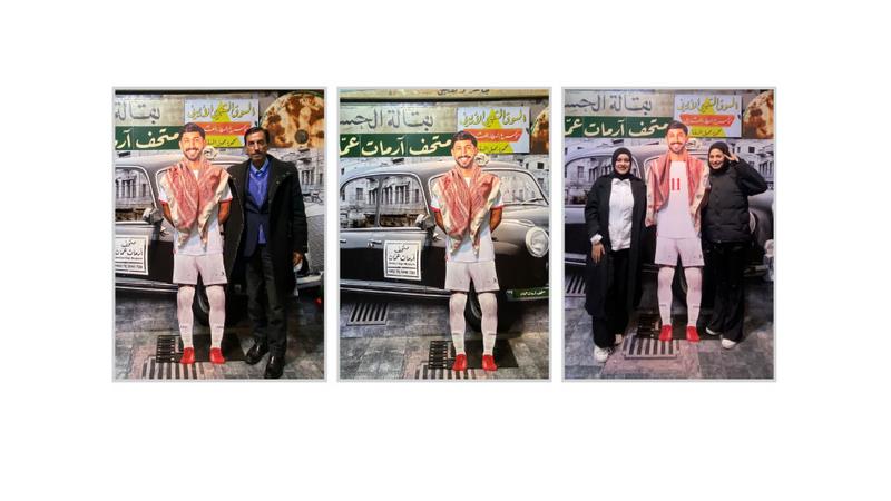 في سابقة تحمل قيم الوفاء ومعاني التقدير والوقوف بالحب والدعم والدعاء لنجم منتخبنا الوطني لكرة القدم يزن النعيمات، بعد تعرضه لقطع بالرباط الصليبي خلال مباراة النشامى مع المنتخب العراقي في الدور ربع النهائي لكأس العرب 2025، نفذ الفنان غازي خطاب، مؤسس متحف آرمات عمان، مجسم جميل وبصورة متقنة جدا وبالحجم الطبيعي للنجم يزن النعيمات، وتم وضع المجسم في الصالة الرئيسية للمتحف، لمنح الفرصة للزوار والضيوف إلتقاط الصور التذكارية مع مجسم النجم النعيمات.