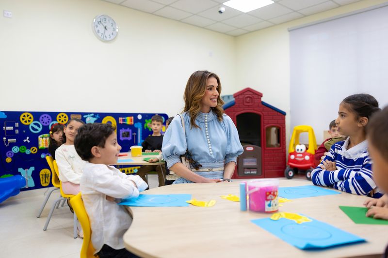 وشاهدت جلالتها عرضاً في ملعب المركز لأطفال مشاركين في تدريب على الكاراتيه، كما اطلعت في مشغل الحرف اليدوية على منتجات لسيدات مشاركات في برامج التمكين الذي تضمن صناعة وتشكيل الفخار، وفي قاعة “الكراميش” المخصصة للأطفال من عمر 3 إلى 6 سنوات، شاهدت جانباً من البرامج التي تُنفذ فيها للثقافة المالية والاجتماعية.