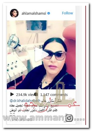 نشرت الفنانة الإماراتية أحلام مقطع فيديو لها من داخل إحدى عيادات أطباء التجميل ، عبر حسابها الرسمى بموقع تبادل الصور الشهير "إنستجرام"، بعد قيامها باجراء عملية تجميل جديدة، وكتبت قائلة: "شكراً دكتور خالد الصبيح وشرابكم أسوي عملية تجميل معاه على فكرة أفضل دكتور تجميل فى الوطن".