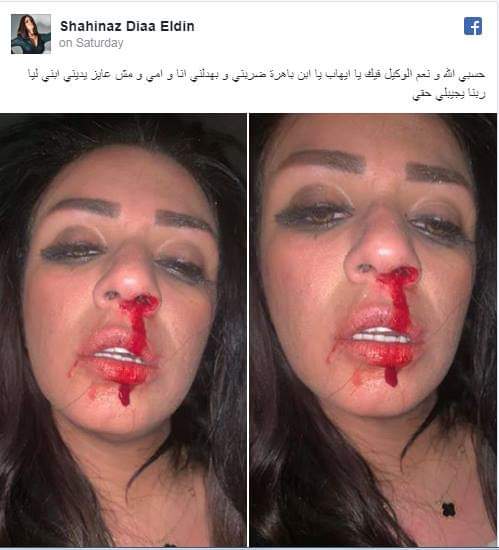 نشرت نجمة ستار اكاديمي المطربة شاهيناز ضياء الدين في حسابها الشخصي عبر "فايسبوك" صورة لها، وتظهر على وجهها آثار الضرب، والدماء تغطي أنفها، وعلقت بالقول أنها ووالدتها تعرضتا للضرب والاهانة على يد زوجها ، الذي رفض إعطاءها ابنهما.