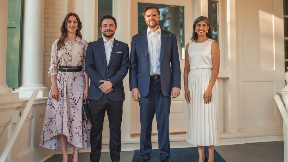 ولي العهد والأميرة رجوة يحضران مأدبة عشاء أقامها نائب الرئيس الأميركي